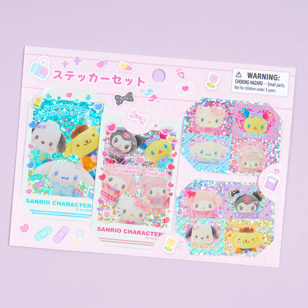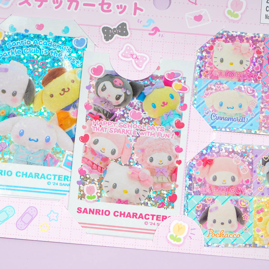 Live a sparkling life when you decorate your desk with this kawaii sticker set! It features glittery prints of Sanrio Characters in school uniforms. The stickers come in different styles and sizes!