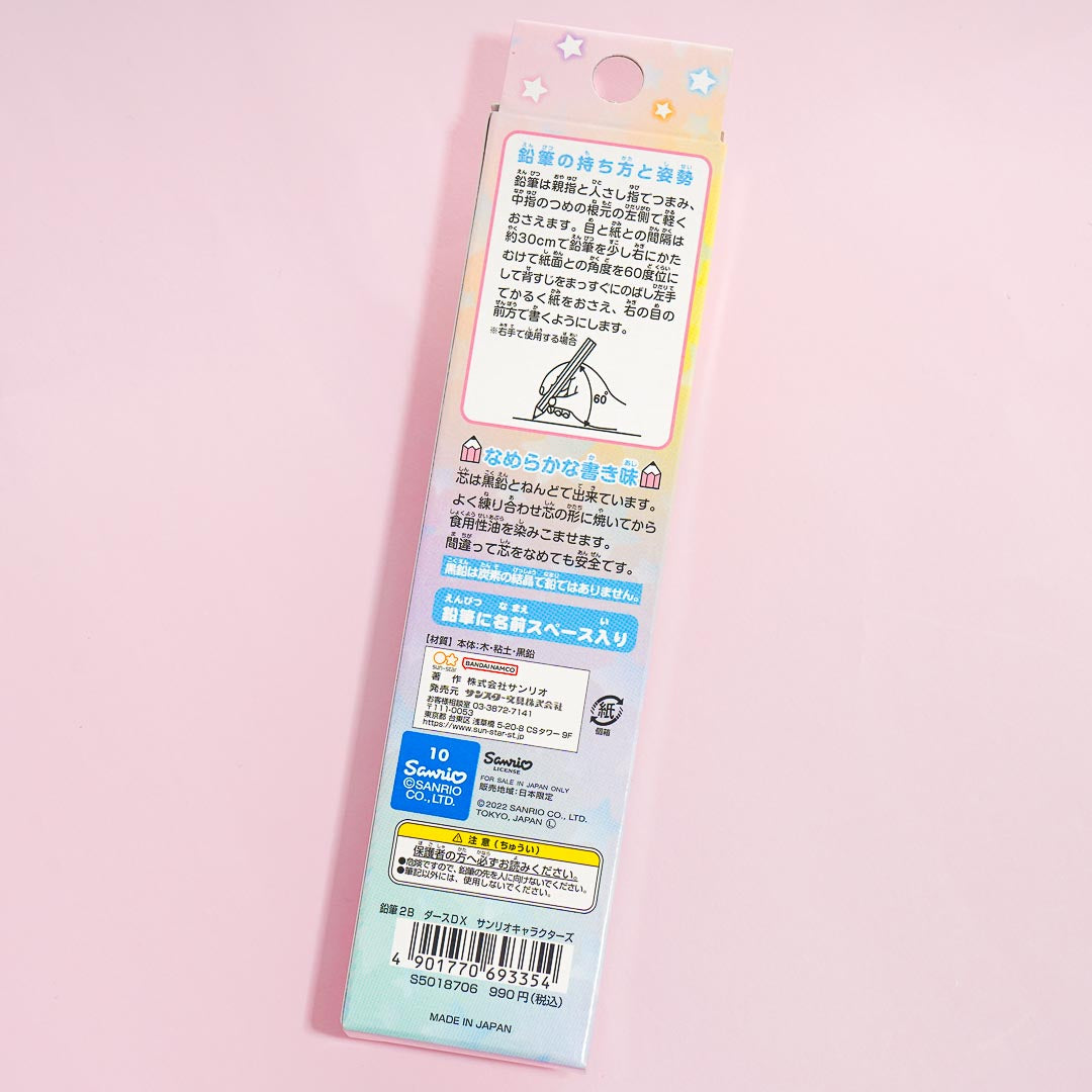 Practice sketching with this cute set of 2B pencils. It showcases prints of Sanrio characters and stars! Each pencil has a handy hexagonal shaft that makes it easy to hold.