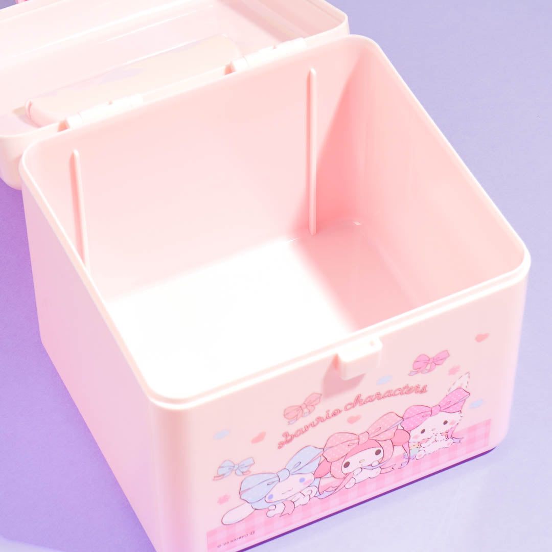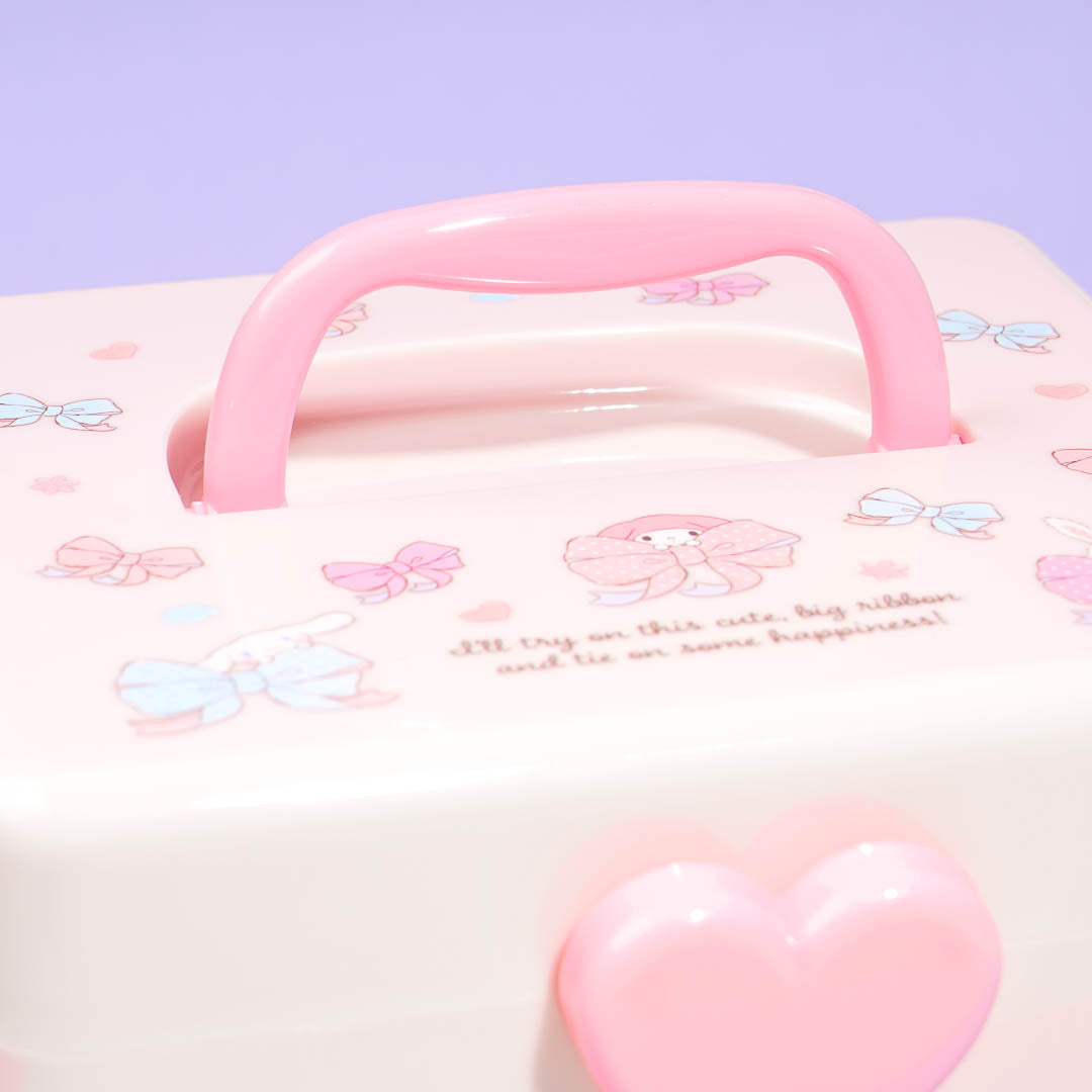This kawaii storage box is illustrated with cuties from Sanrio wearing adorable ribbons on their heads. It's the perfect item for organizing your pills, charms, and other things! Not only does it have a heart-shaped lock, but this handy storage box has a removable tray with 2 detachable partitions. Nifty!