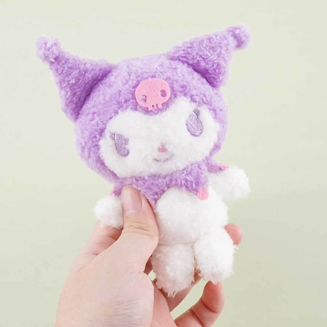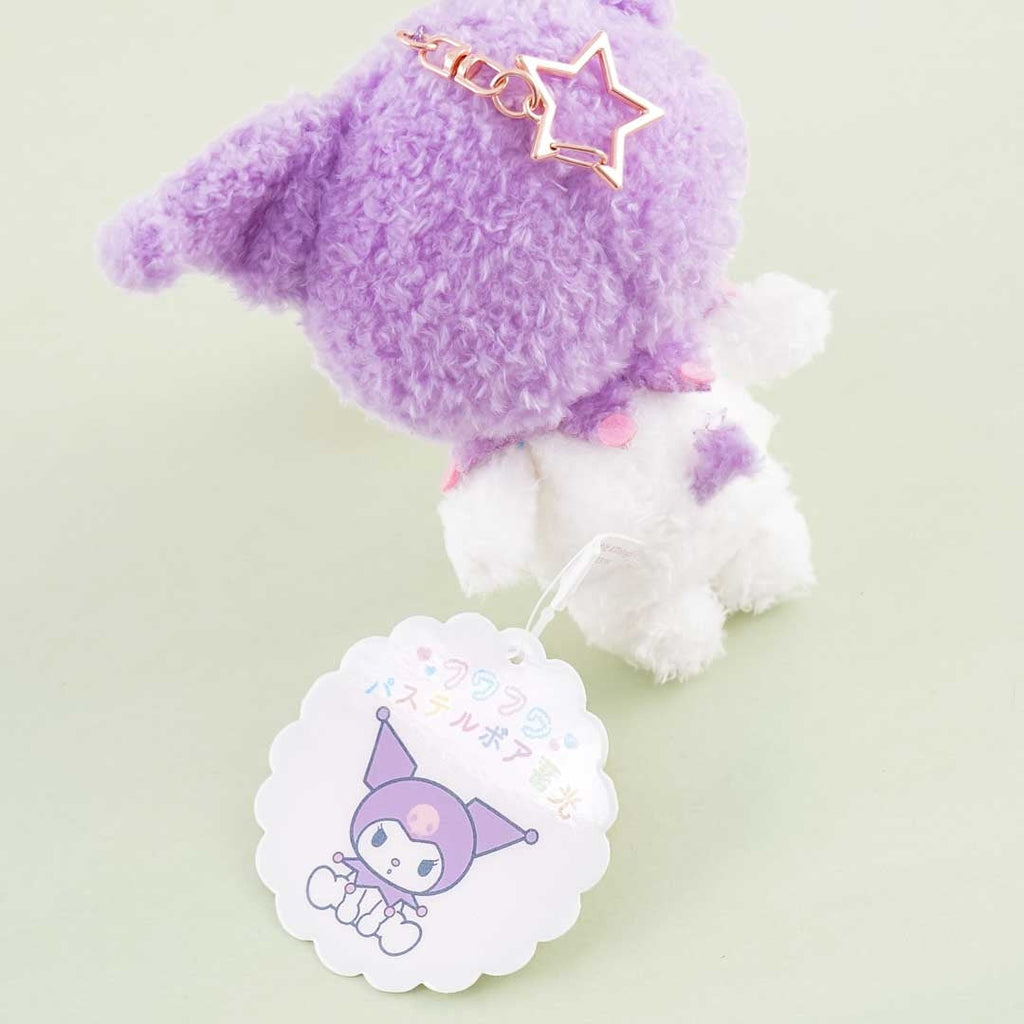 A medium pastel-colored Kuromi furry plushie that doubles as a charm