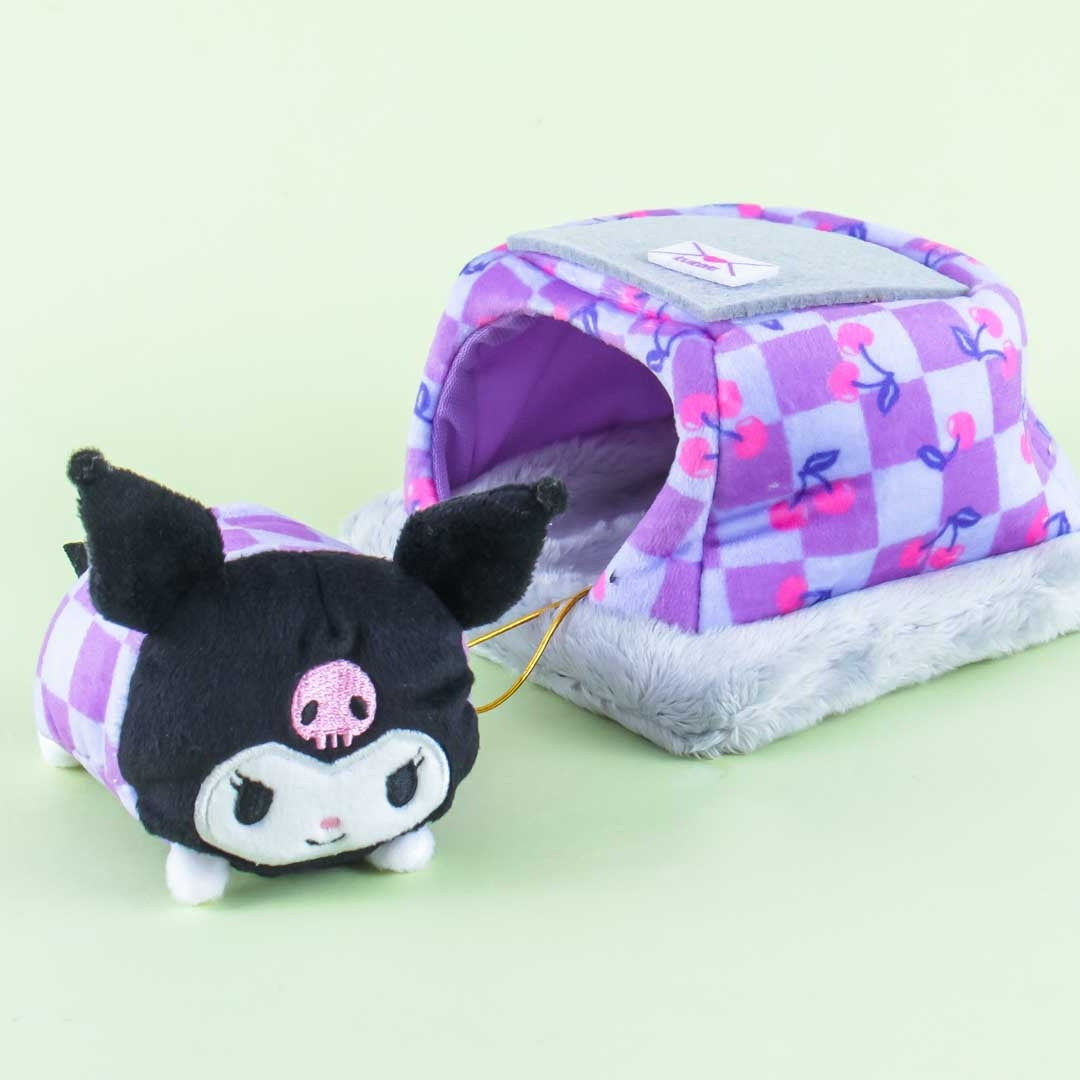 Winters are fun for Kuromi as she's warming up under a kotatsu, a Japanese wooden table covered by a heavy blanket that has warmer inside! You can place or remove this super cute mini Kuromi plushie from the kotatsu whenever you like!