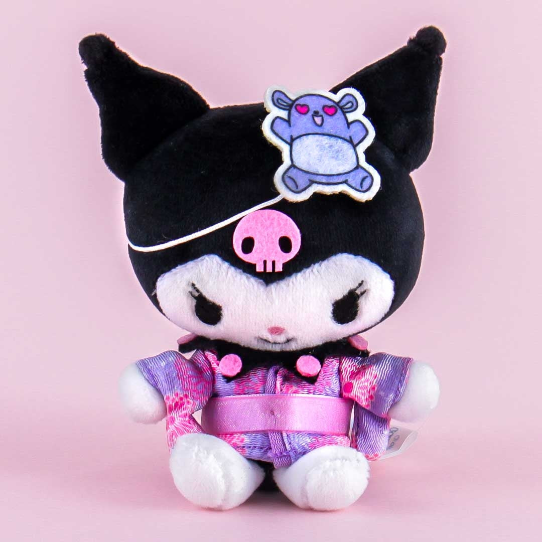 A medium-sized Kuromi plushie that doubles as a bag charm