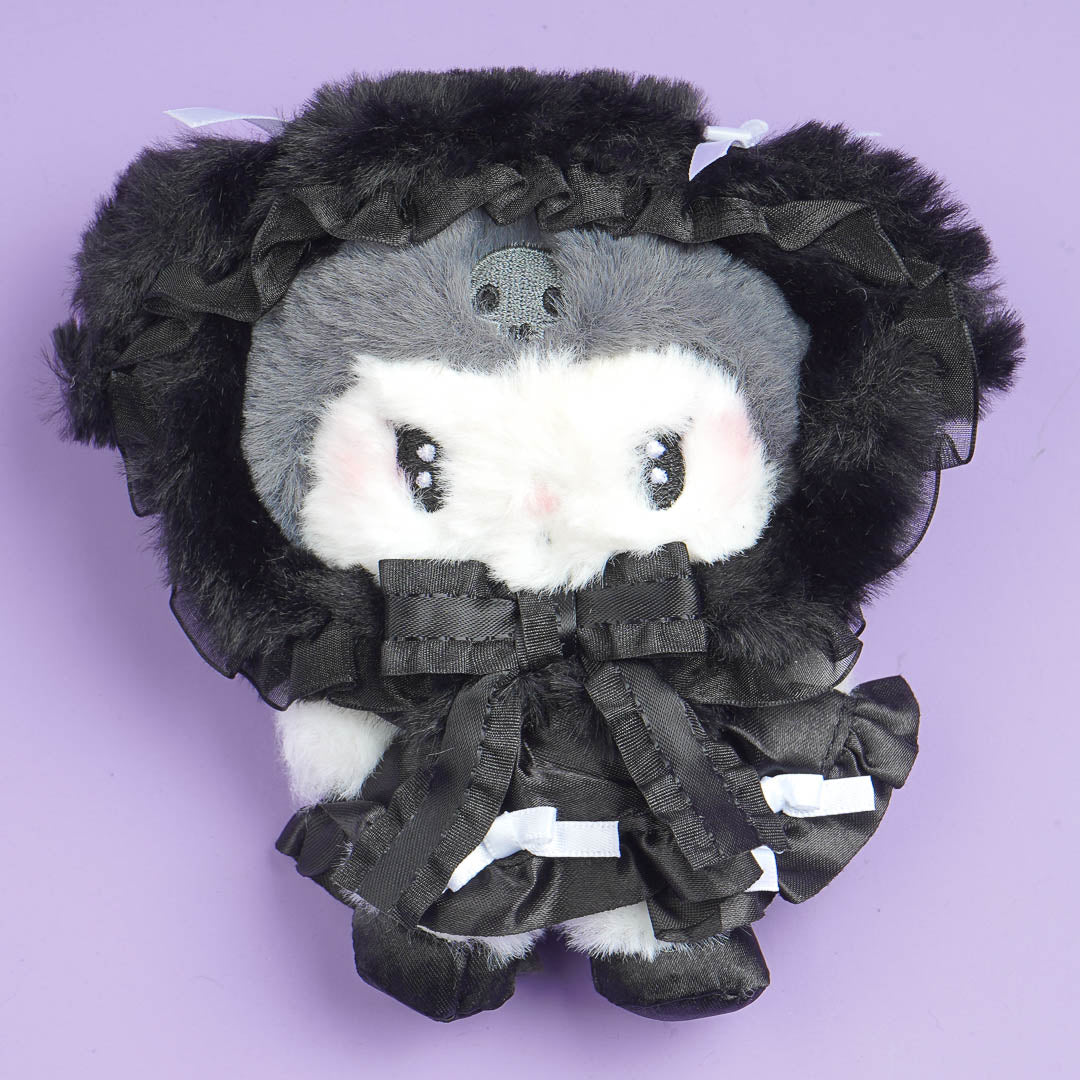 Enjoy playing dress-up with this super kawaii Kuromi plushie! This medium-sized cutie is in grayscale color and is wearing an all-black Lolita outfit. You can also use it as a charm to add a dose of cuteness to your plain tote bag!