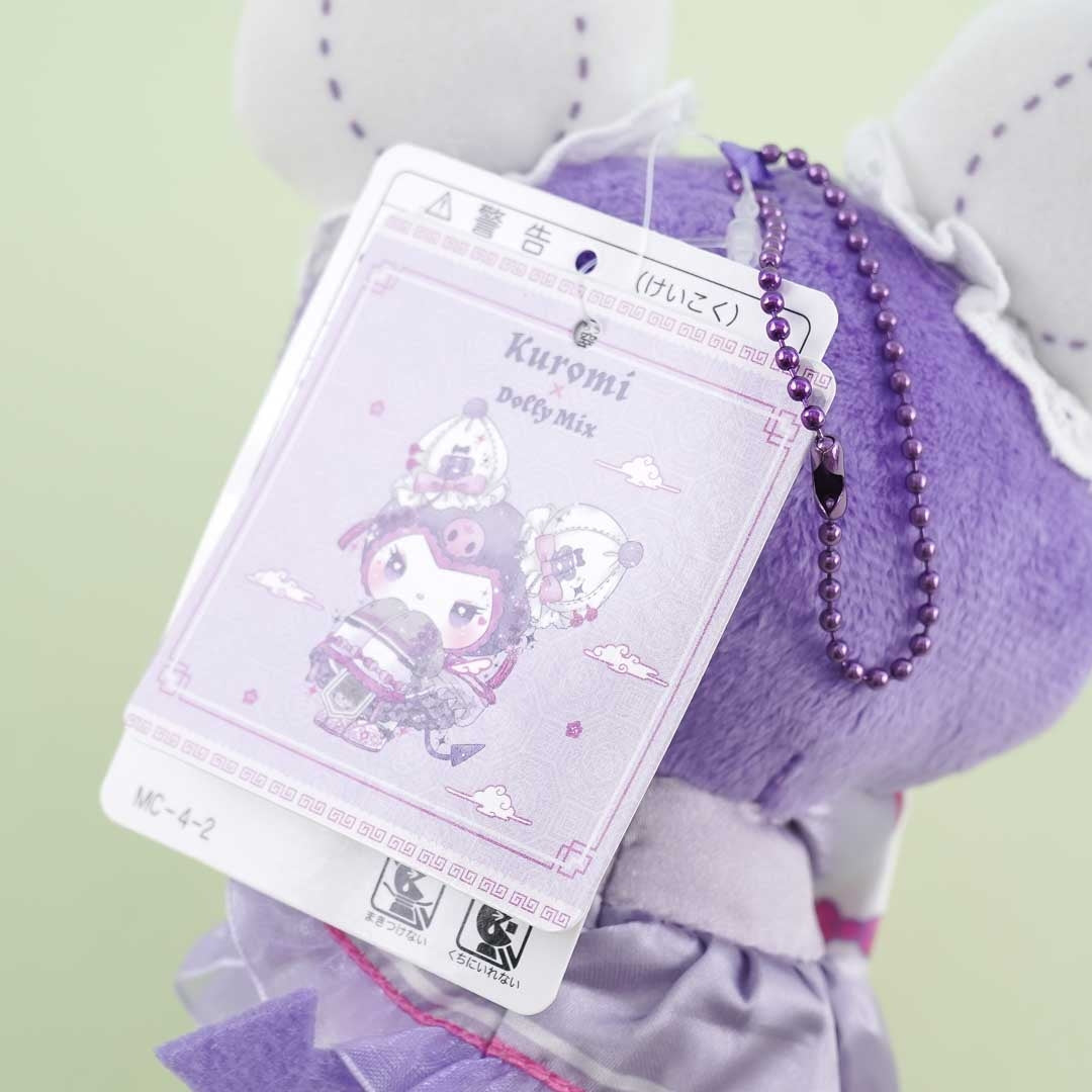 Take this kawaii Kuromi plushie with you to your next adventure! It’s made of super-soft polyester and comes with a detachable ball chain so you can attach it to your backpack! This medium-sized cutie is wearing a white lolita outfit inspired by Sanrio’s collaboration with DOLLY MIX — a lolita-inspired illustration brand from the Japanese character business company, Movic!