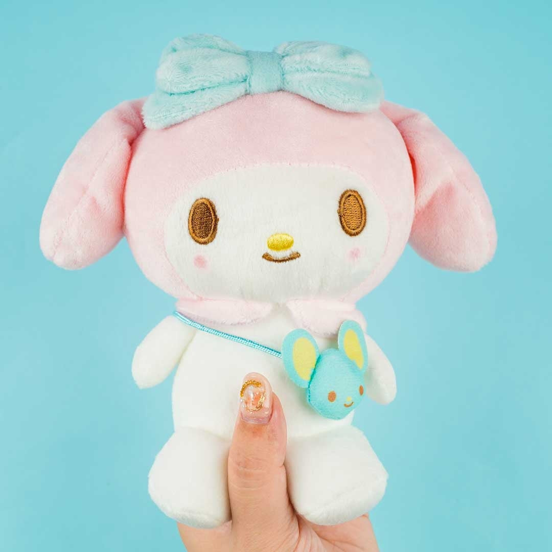 Kawaii-fy your desk with this medium-sized blushing My Melody plushie. It can sit down on its butt so you can display this conveniently on your desk or shelf.