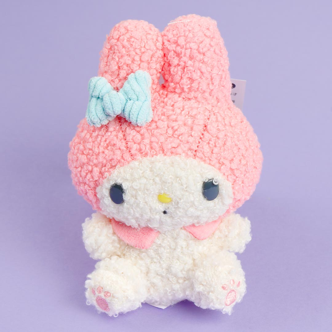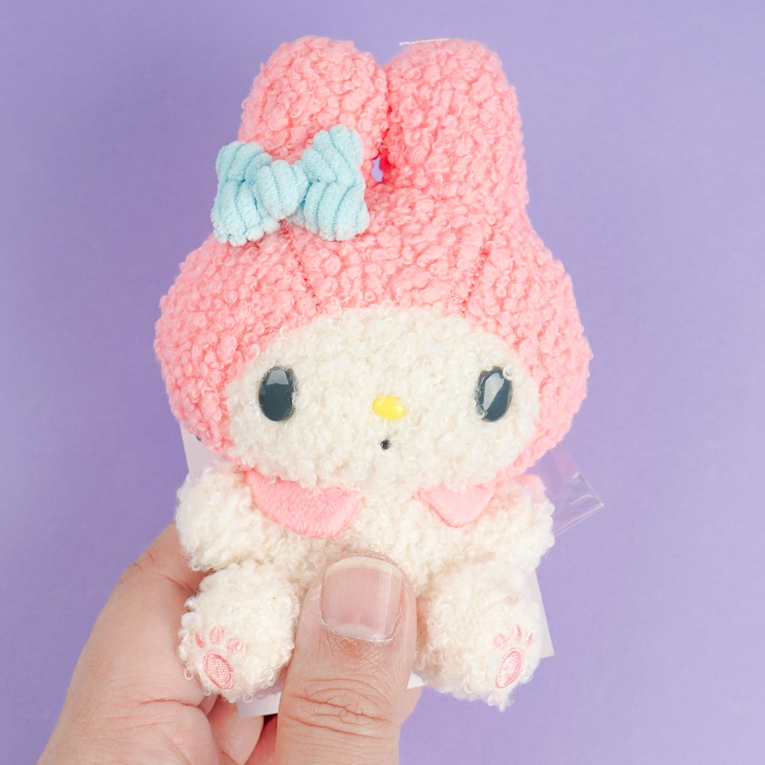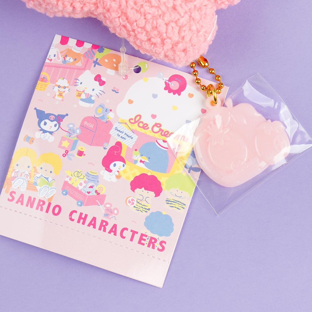 This My Melody plushie will brighten up your desk or bag! It comes from the "Sanrio Fancy Shop" series that features a nostalgic sweet shop design. The medium-sized plushie is made from soft fluffy material and has an added strawberry charm!