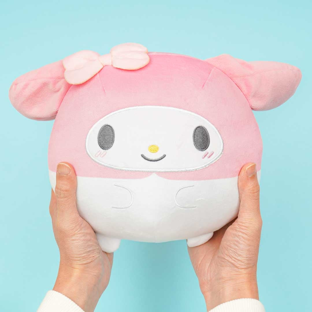 Play together with this kawaii and round My Melody plushie. This medium-sized stuffed toy comes from the Sanrio Characters Fuwakororin series!