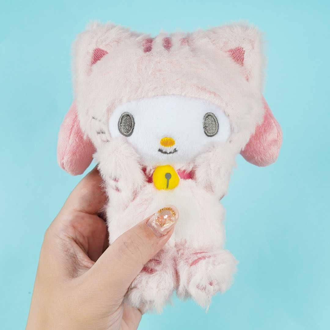 This medium-sized My Melody plushie is wearing a kawaii neko costume! You can display this fluffy plushie in a sitting position.