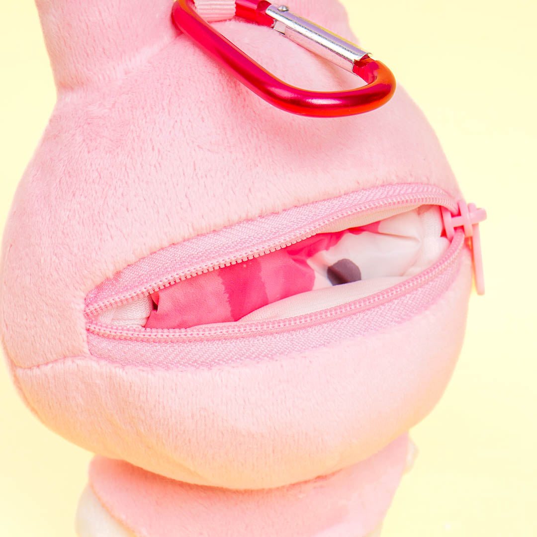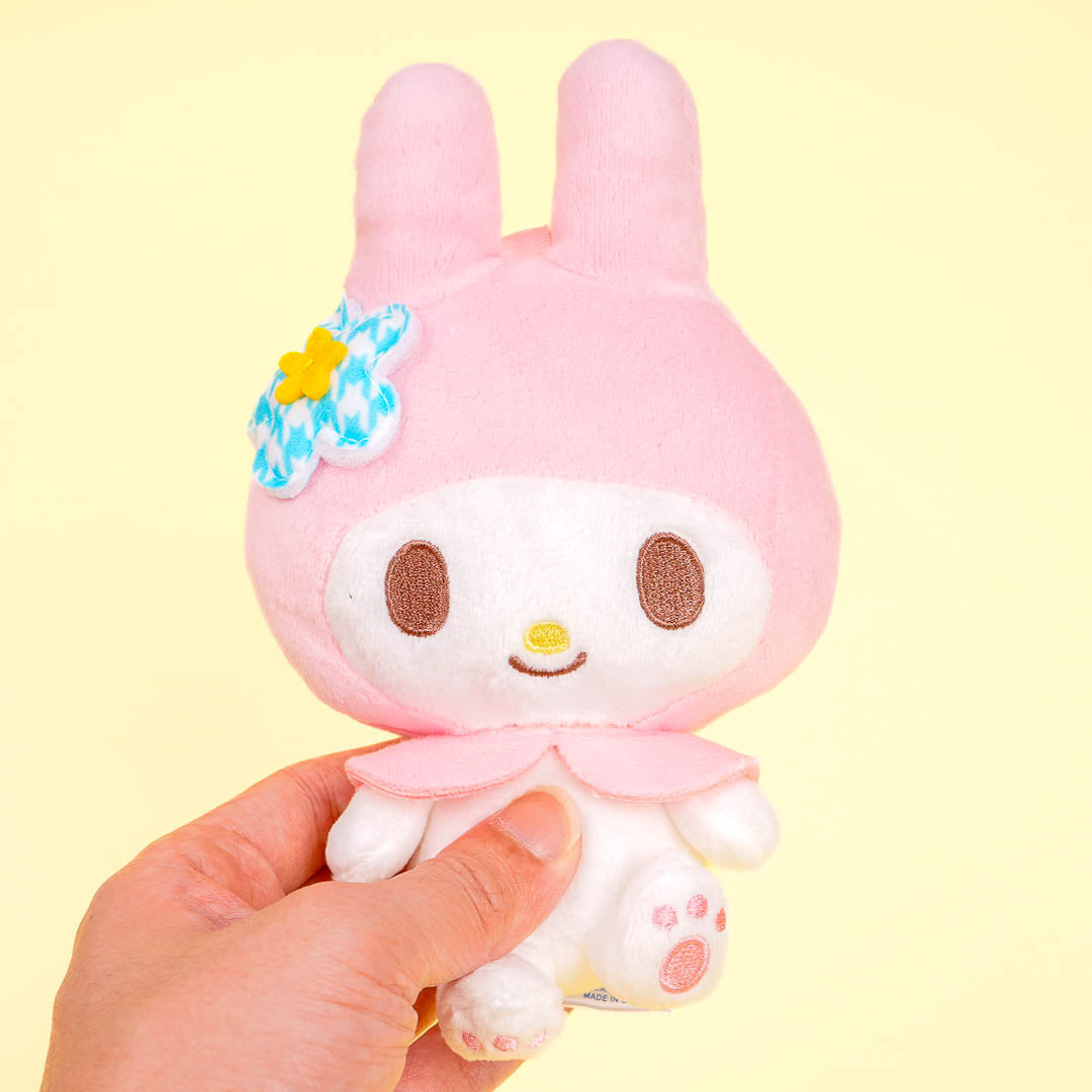 This super kawaii My Melody plushie comes from the Sanrio Kaohana series! Add this medium-sized stuffed toy to your collection. It has a cute little secret - behind its head is a zippered compartment with a tote bag illustrated with My Melody and flowers. You can use the tote to carry small knick-knacks you buy from the convenience store!