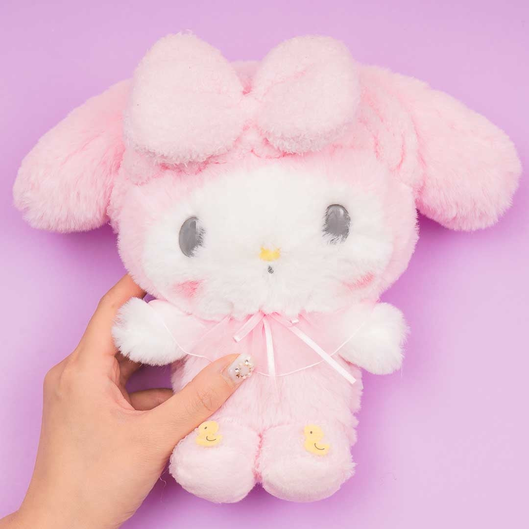 A super cute My Melody plushie in furry headband and pajamas
