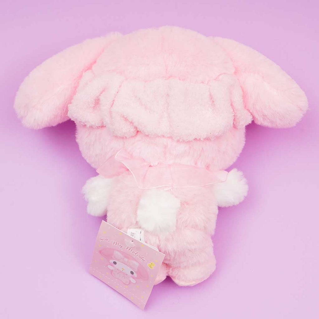 Sleep soundly beside this kawaii My Melody plushie with blushing cheeks! It comes in medium size and is ready to relax while in a matching furry set of pajamas and a headband! This plushie is made of fluffy boa material.