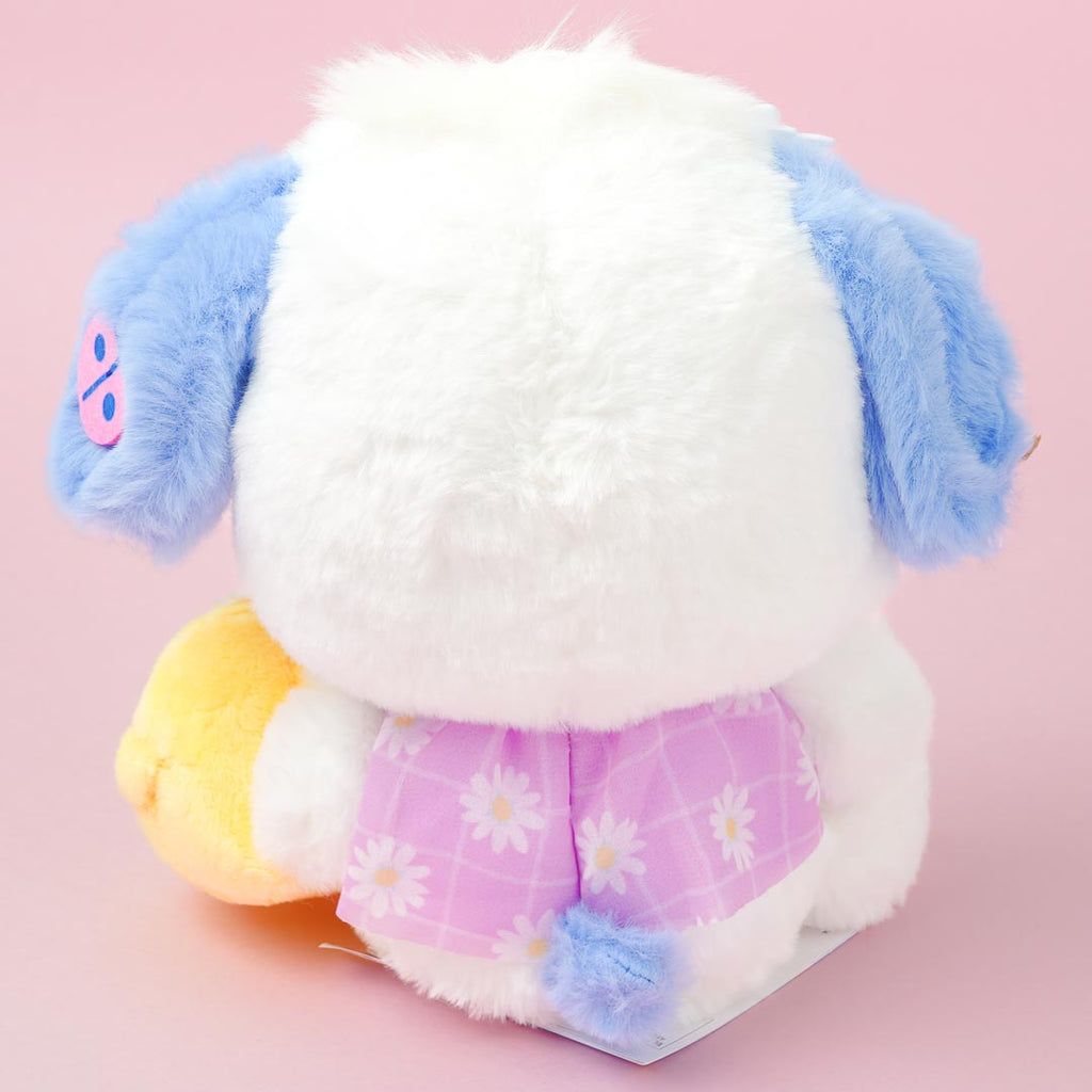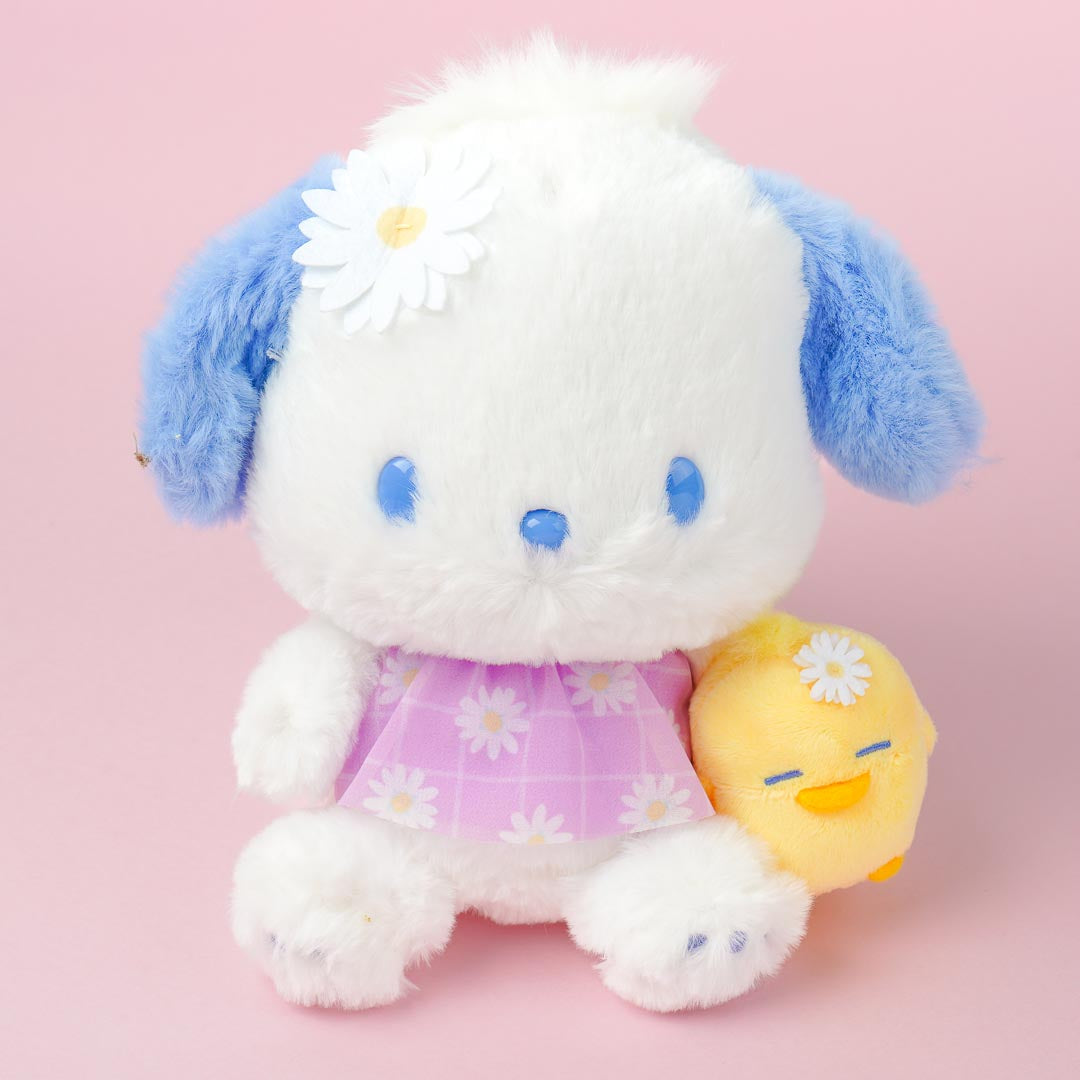 Have a study buddy with this kawaii Pochacco plushie! It comes with a daisy accessory and a cute little chick attached to its side. This medium-sized cutie comes from the Sanrio Daisy Plushie series.