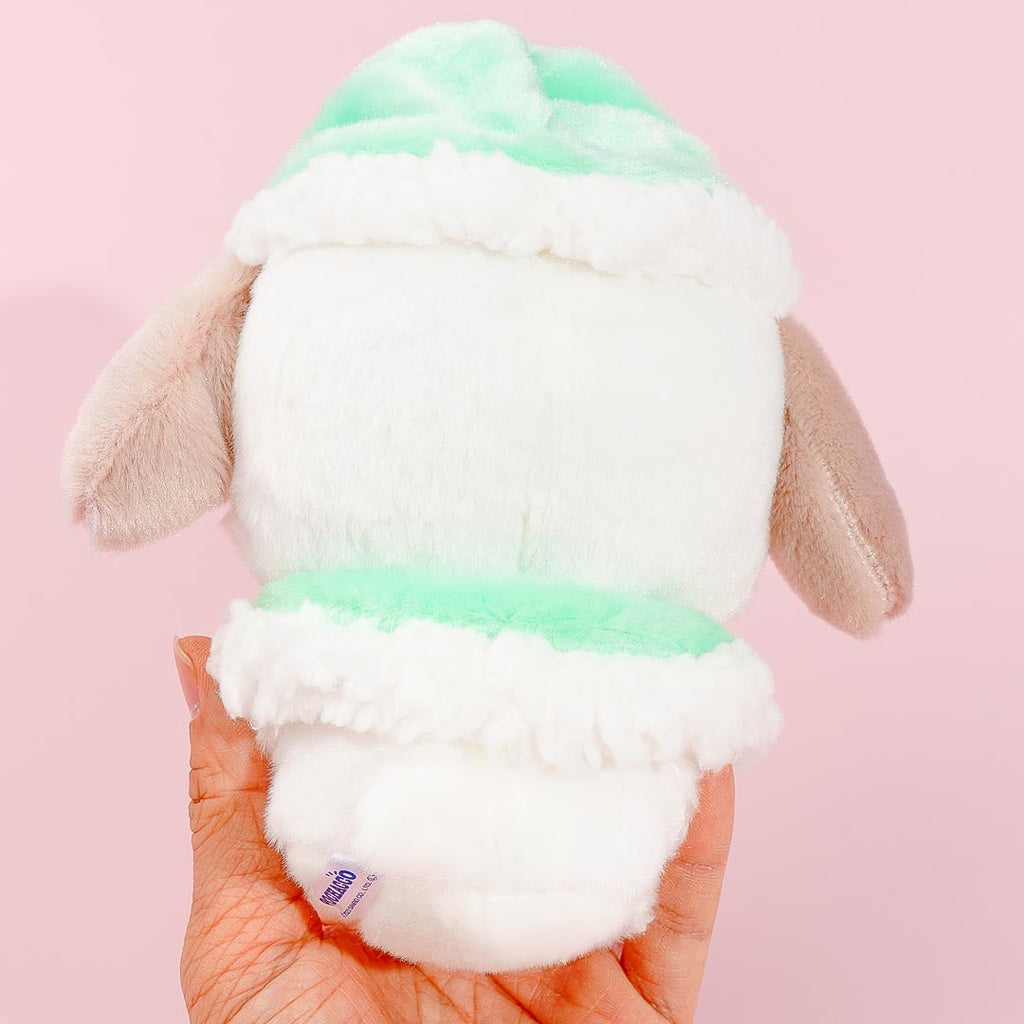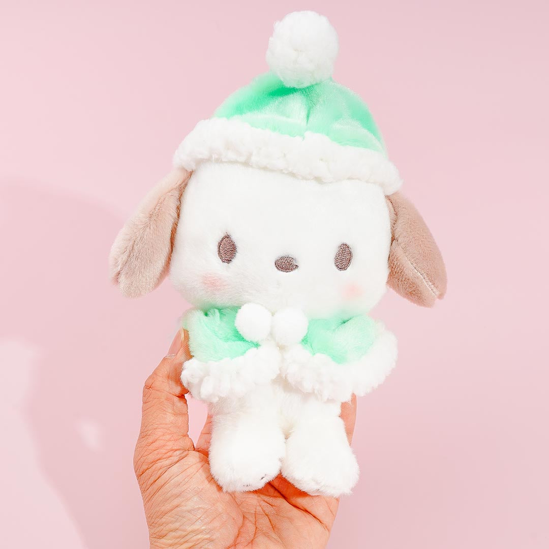 This super cute Pochacco plushie is wearing an adorable hood! It comes from the Sanrio Fluffy Fluffy Bonbon collection. Have fun playing together with this medium-sized cutie.
