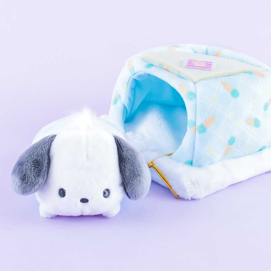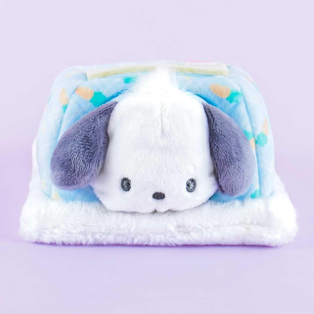 Add this super cute Pochacco character plushie with its own kotatsu to your collection! You can take this small-sized plush in or out of its kotatsu or Japanese low table with an electric warmer — as you please.