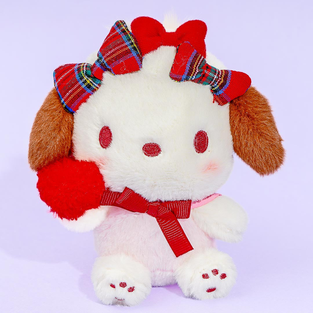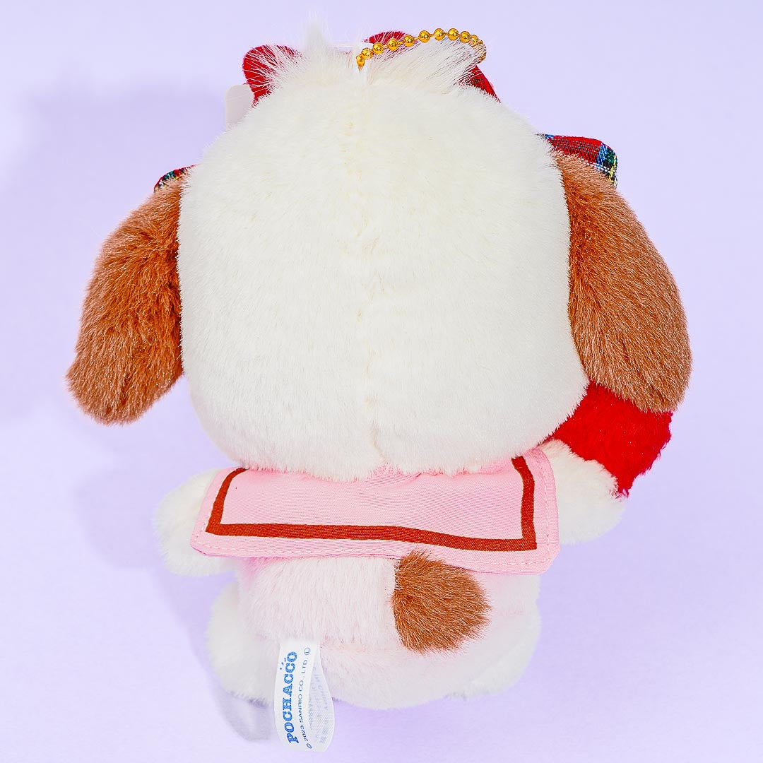 Hang this kawaii Pochacco plushie in your room or your bag! It's wearing a sailor's cape with matching cute ribbons. This medium-sized plushie also holds a fluffy heart to spread love vibes.