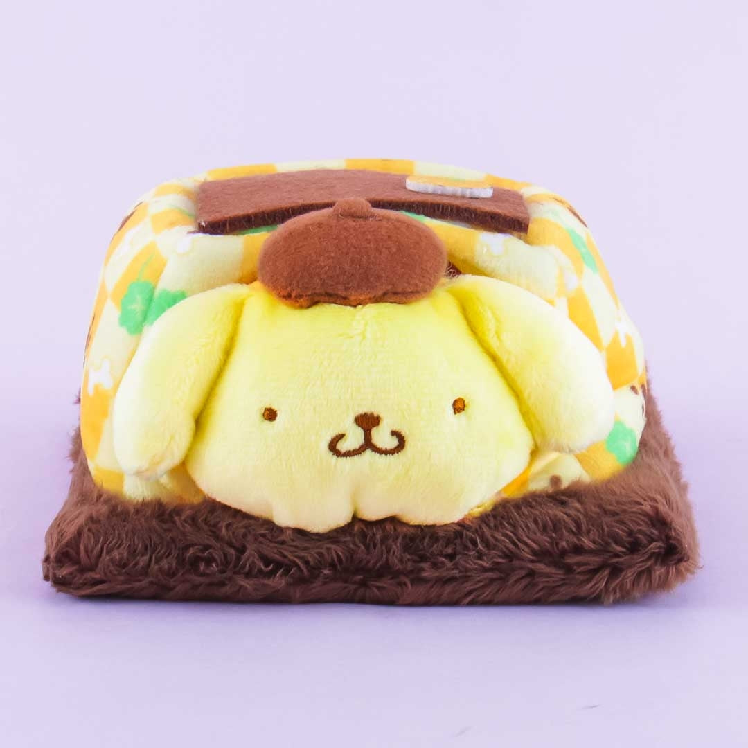 Enjoy playing with this kawaii Pompompurin character plushie with its own kotatsu! You can place this small-sized cutie in or out of its kotatsu or Japanese low table with an electric warmer.