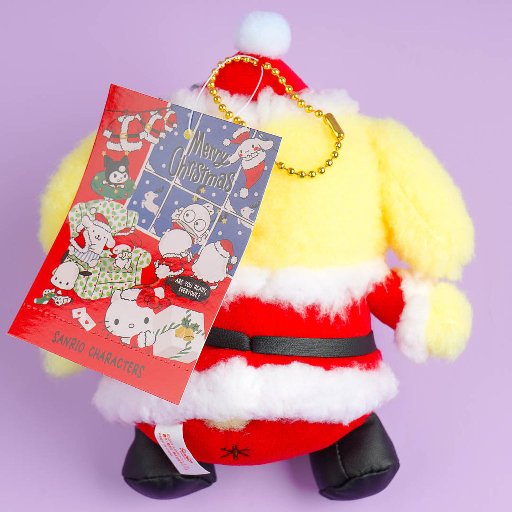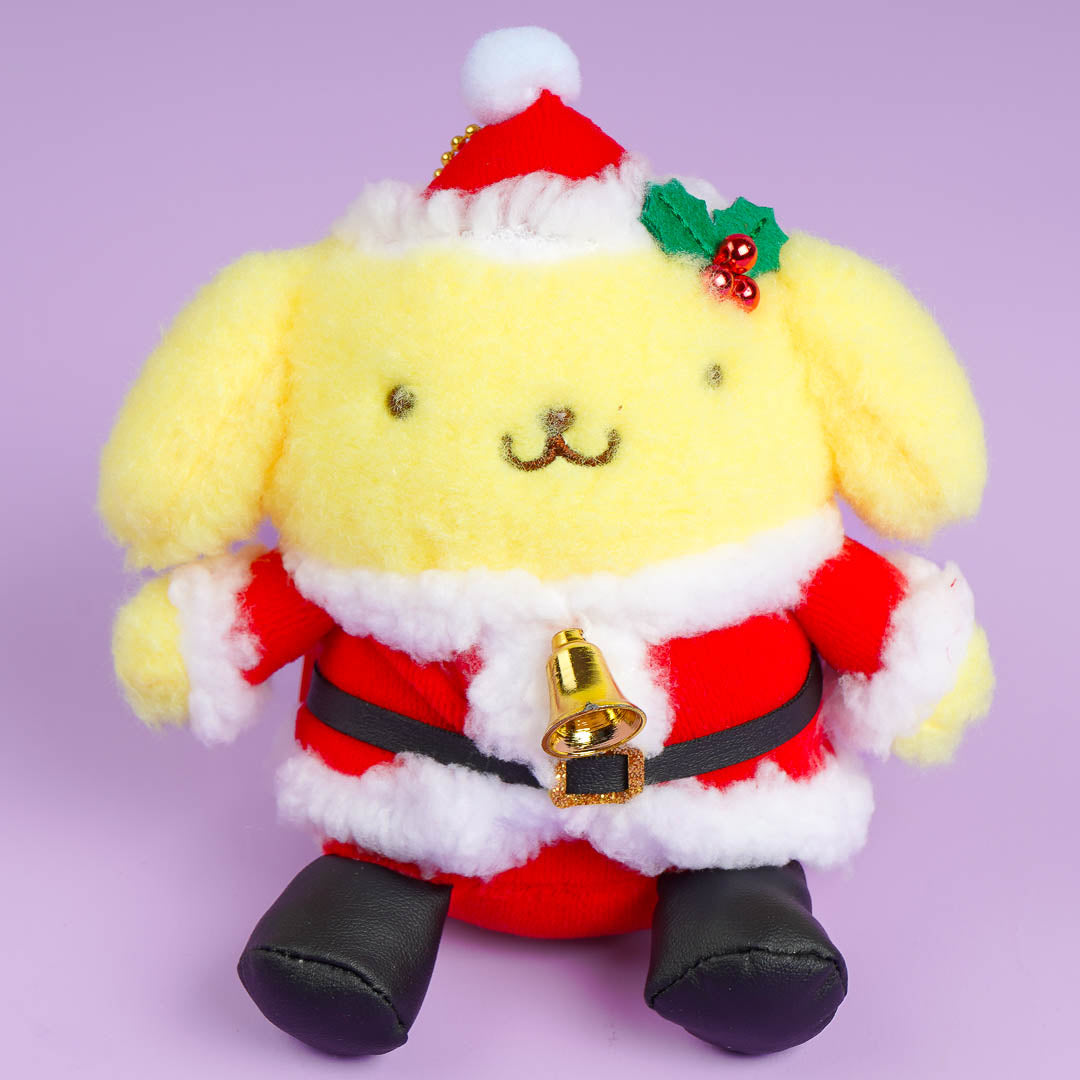 This medium-sized Pompompurin plushie is extra furry and ready for Christmas! It's wearing a cute and details Santa Claus outfit and has a bell on its neck. Attach this to your bag or hang it in your room as a kawaii decor!