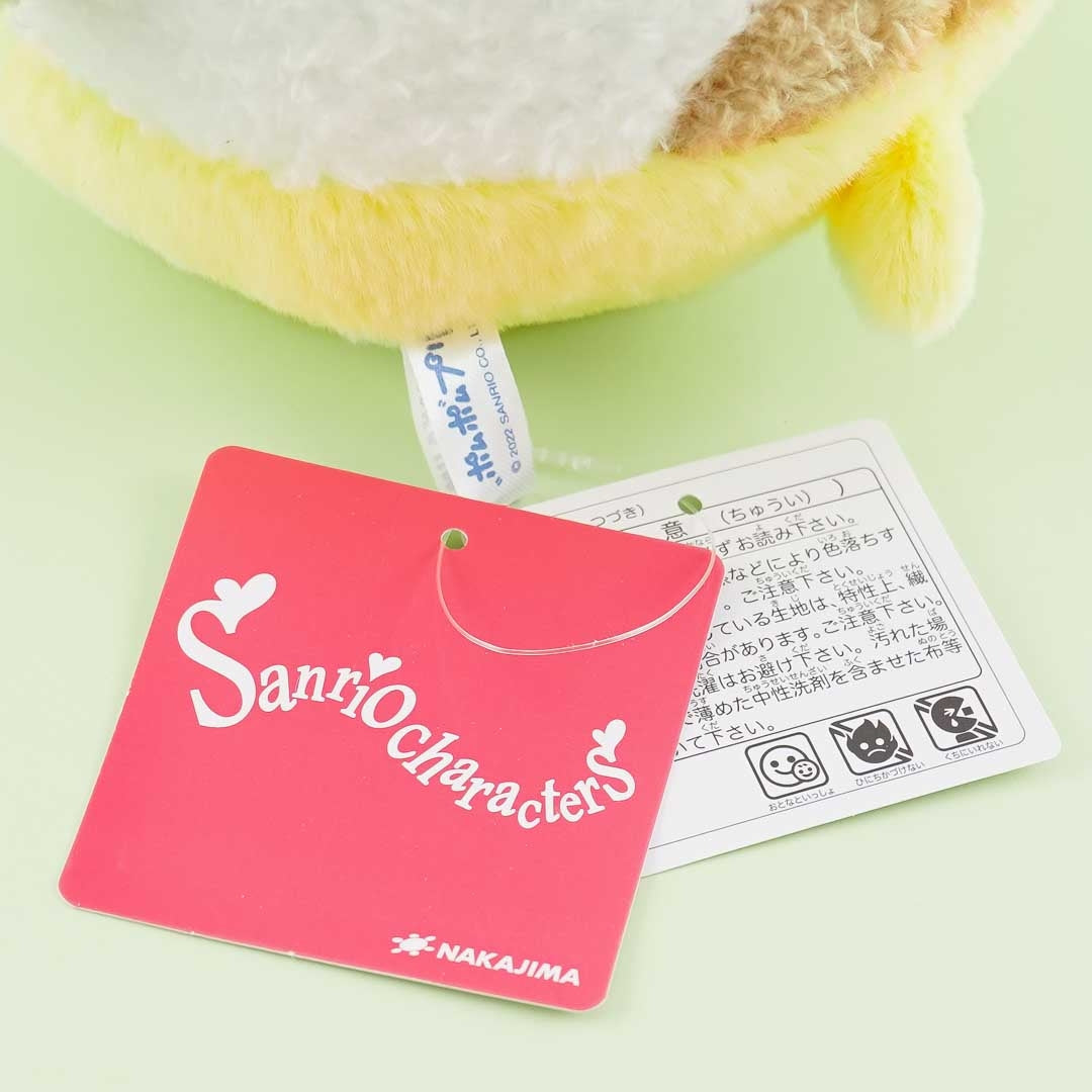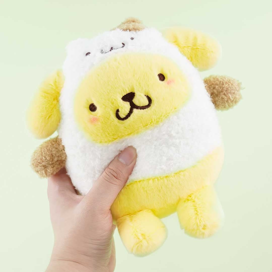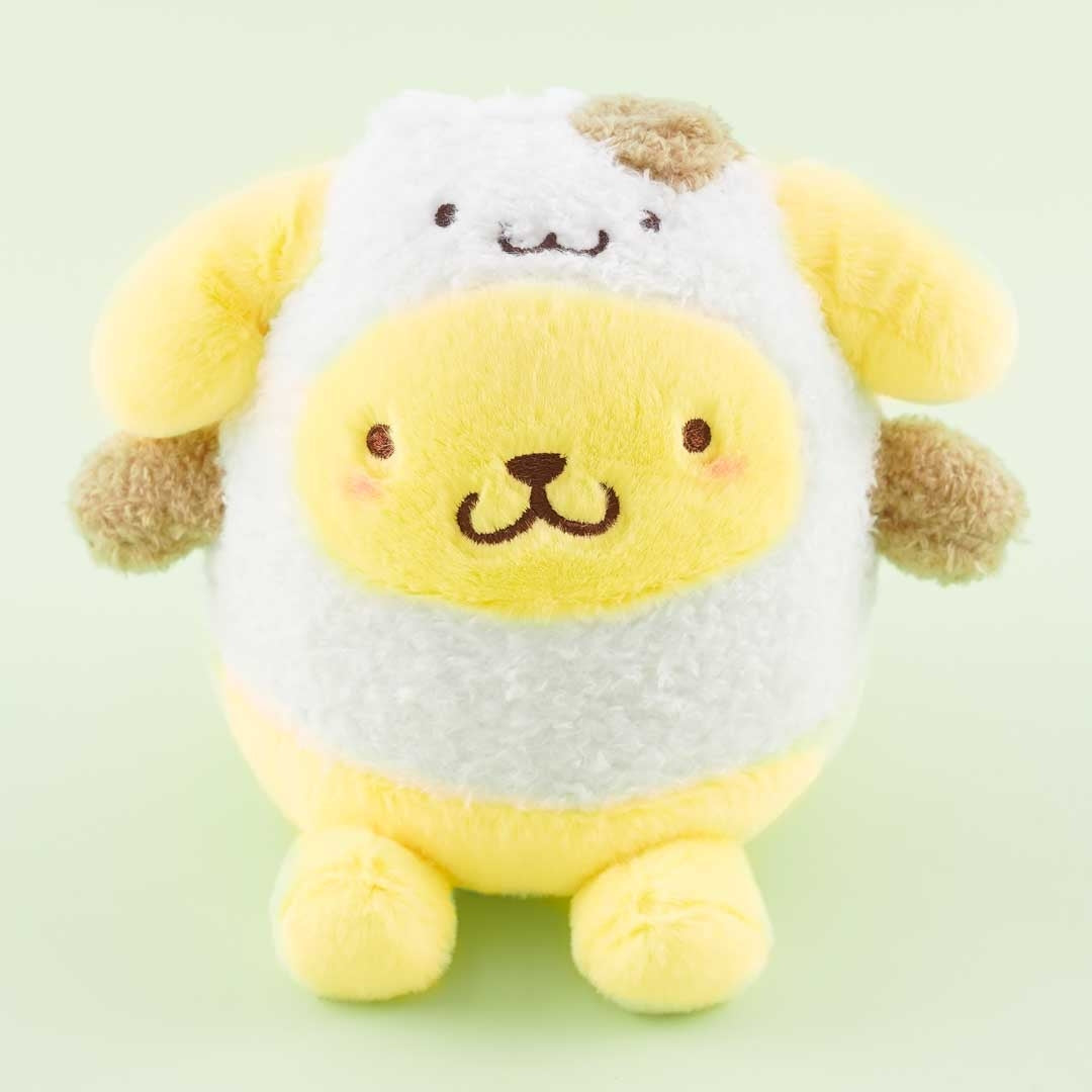 Play dress-up with this super kawaii Pompompurin plushie. This mini-sized stuffed toy is wearing a costume of its friend, Muffin. It's super soft and nice to hold!