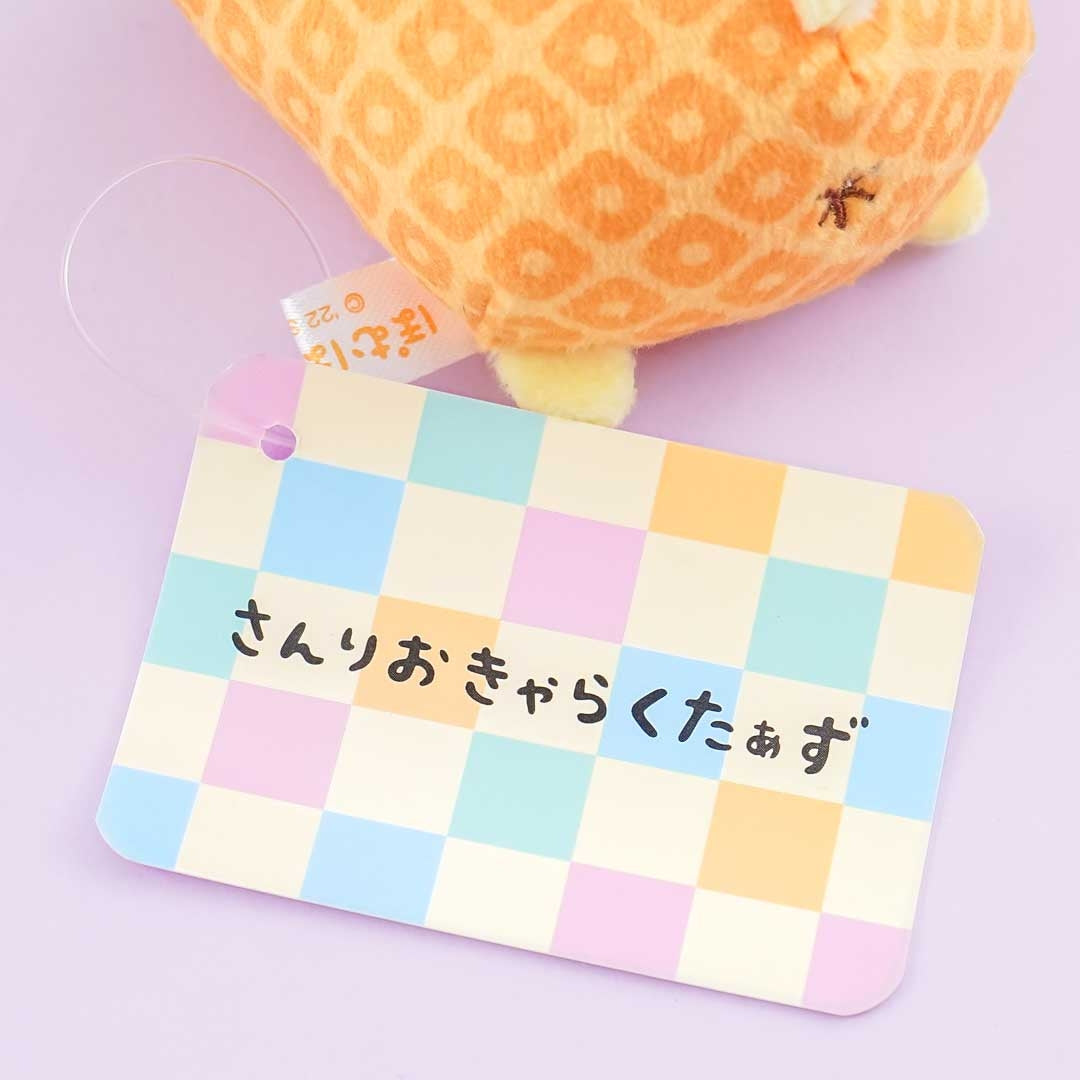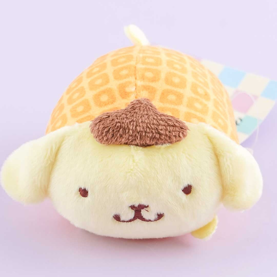 • A cute mini Pompompurin bean bag plushie with traditional Japanese patterns