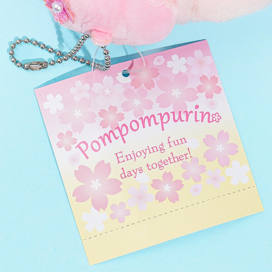 Take this blush pink Pompompurin plushie to your next hanami or cherry blossom-viewing picnic! It comes in medium size and is wearing overalls that’s filled with sakura flowers! Attach it to your tote bag to keep it from getting lost while outdoors.