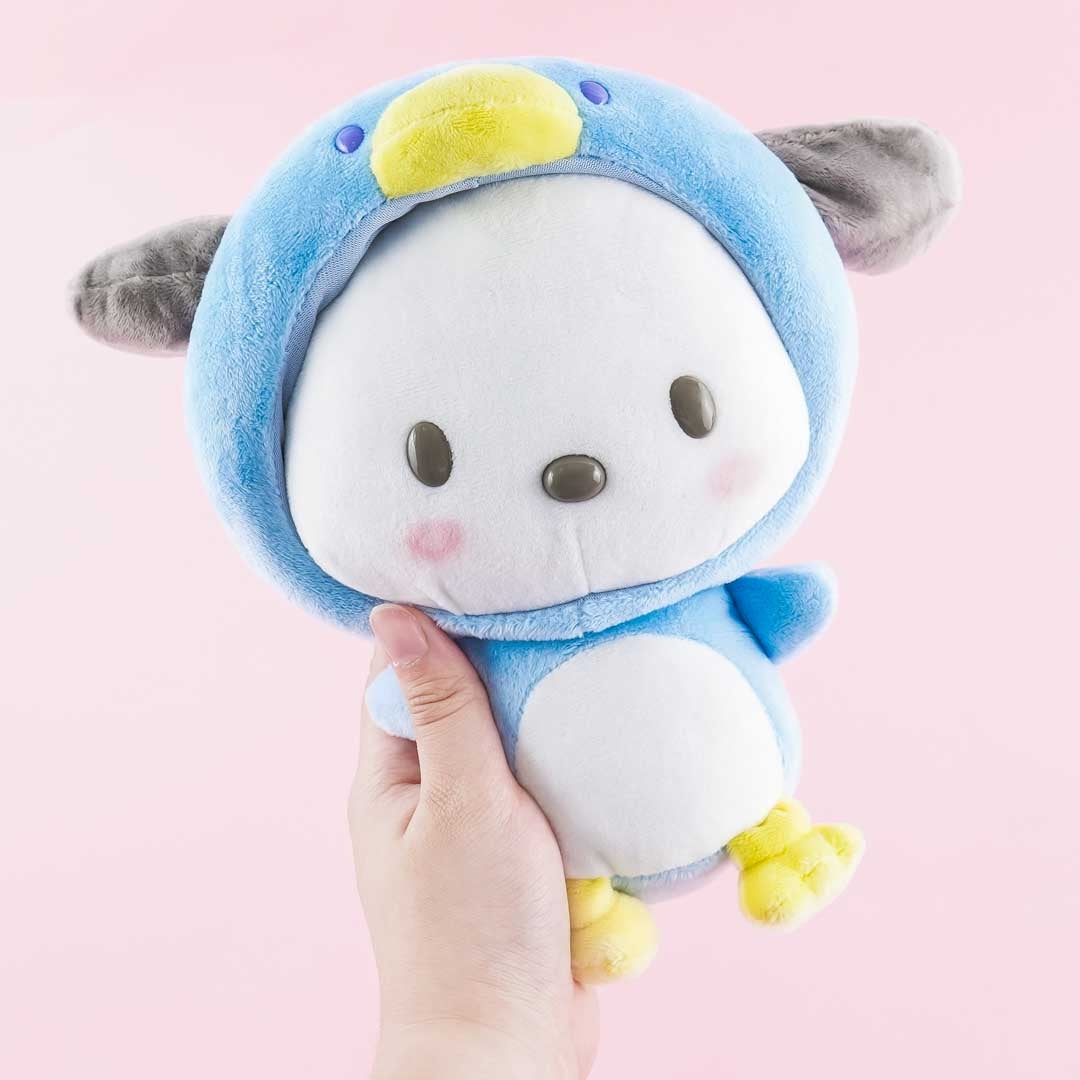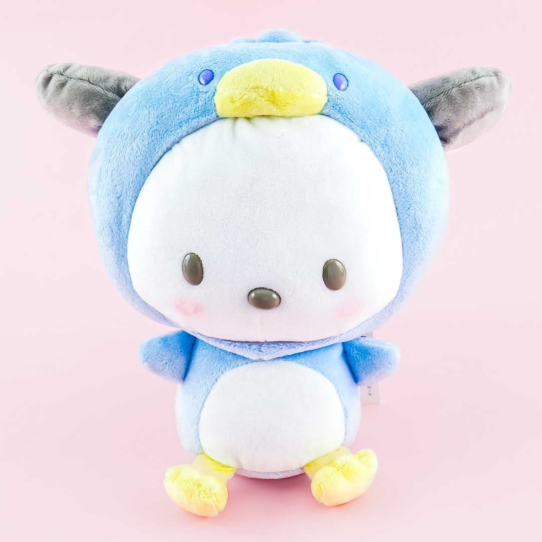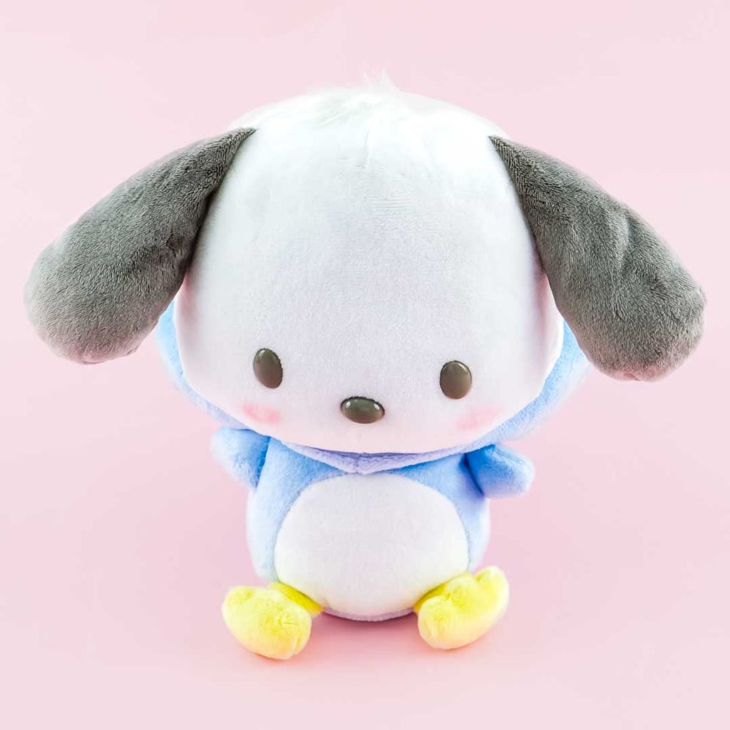 Add this super kawaii Pochacco plushie to your stuffed toy collection! This medium-sized cutie wearing a penguin costume comes from the Sanrio Ice Friends plushie series. You can remove the hood off of its head when you want!