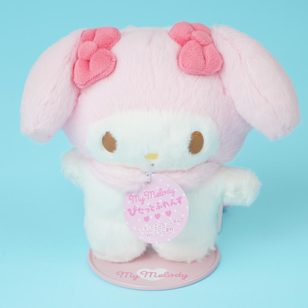 Add this cute medium-sized My Melody plushie to your collection! It comes from the "Sanrio Pitatto Friends" series of standing plushies that can be dressed up and used as props for photo shoots. You can also place this on your nightstand as kawaii decor.