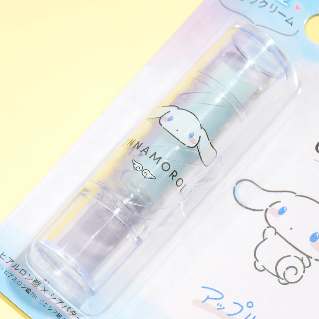 Add this super kawaii tube of clear lip balm to your beauty kit. It's decorated with a print of Cinnamoroll and angel wings! This lip balm has a lovely apple scent.