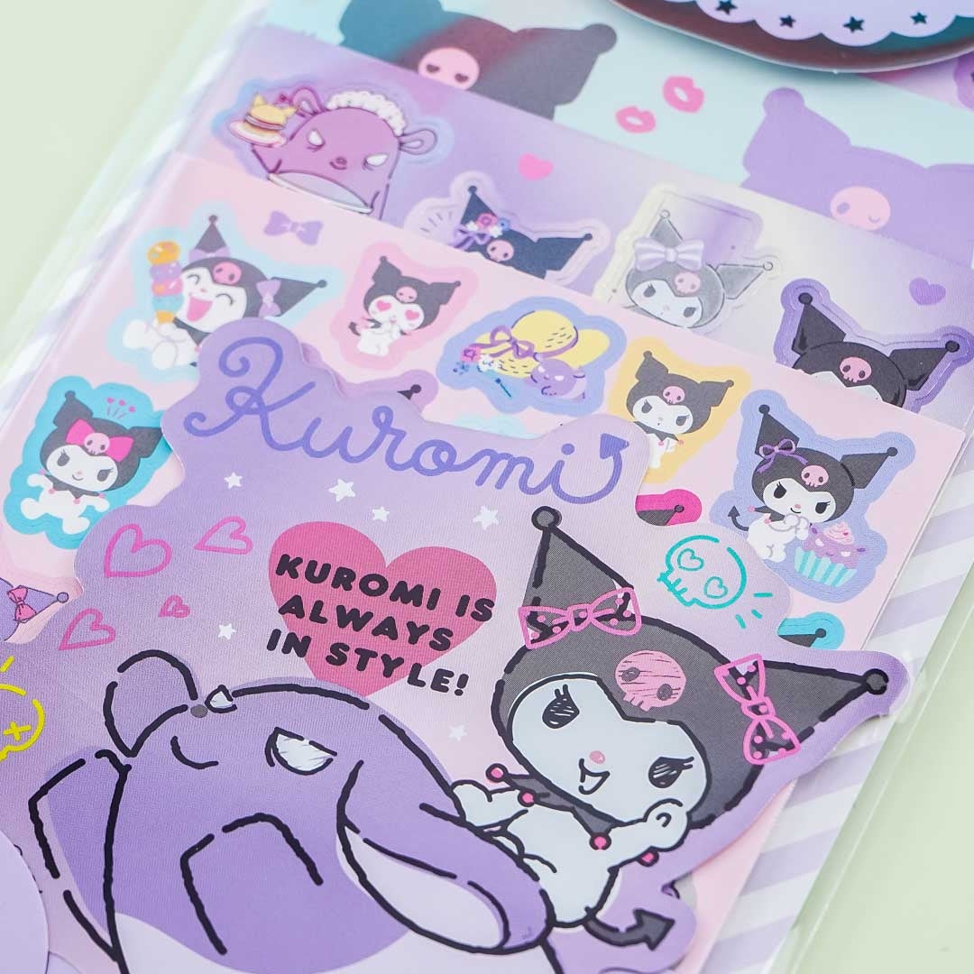 Add a dose of cuteness to your notebook covers by using these super cute paper stickers! The set has over a hundred various die-cut designs featuring Kuromi spending a happy day together with her sidekick, Baku! It also includes an additional large-sized sticker and a kawaii folding case that looks like a greeting card.
