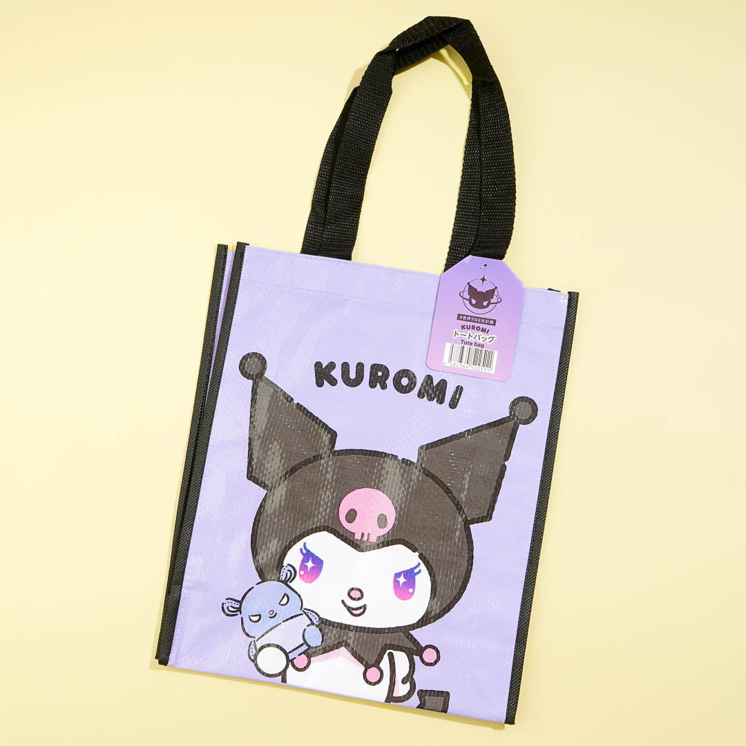 Go grocery shopping with this kawaii tote bag. It's decorated with a print of Kuromi carrying a plushie of her best friend, Baku! Use it to carry your essentials while walking around the mall.