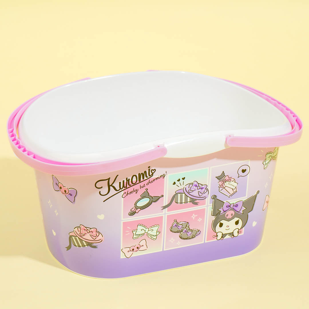 This kawaii basket has super cute illustrations of Kuromi with her fave beauty items like a hand mirror, perfume, makeup, and more! Use this handy basket to keep your makeup tools or other small knickknacks organized.