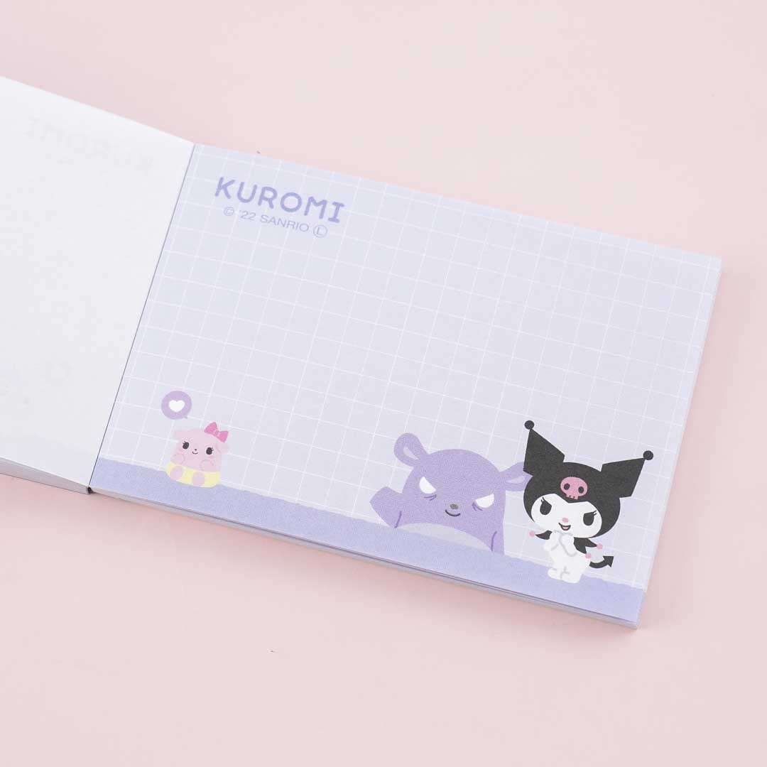 • A kawaii mini memo pad with prints of Kuromi and friends in a stack