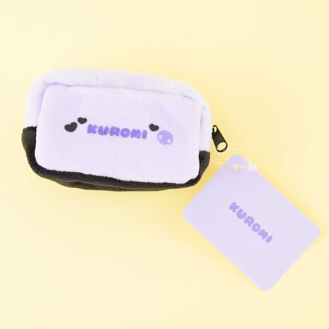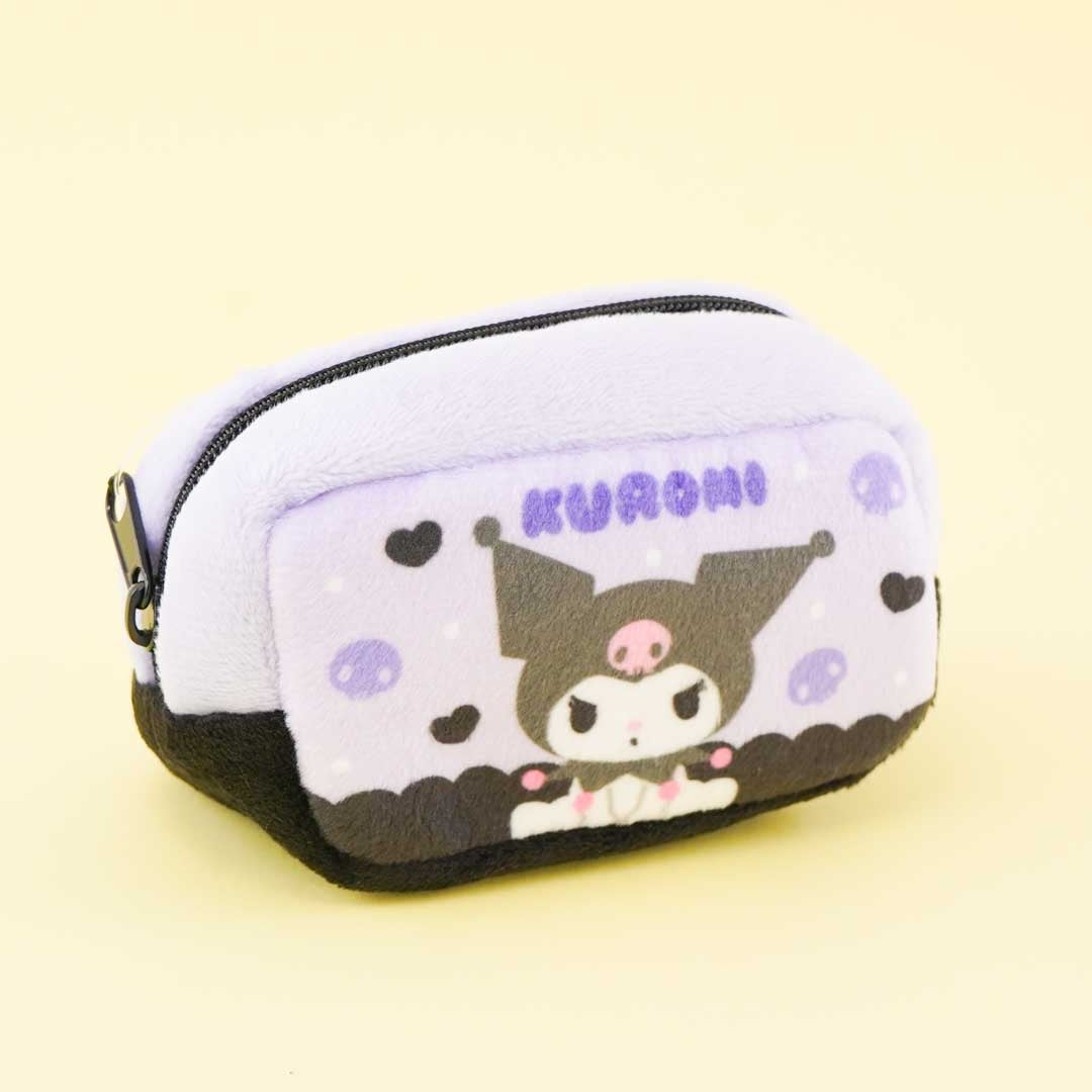 Don't forget to organize your things using this cute and fluffy mini pouch. This zippered pouch showcases illustrations of Kuromi and hearts!