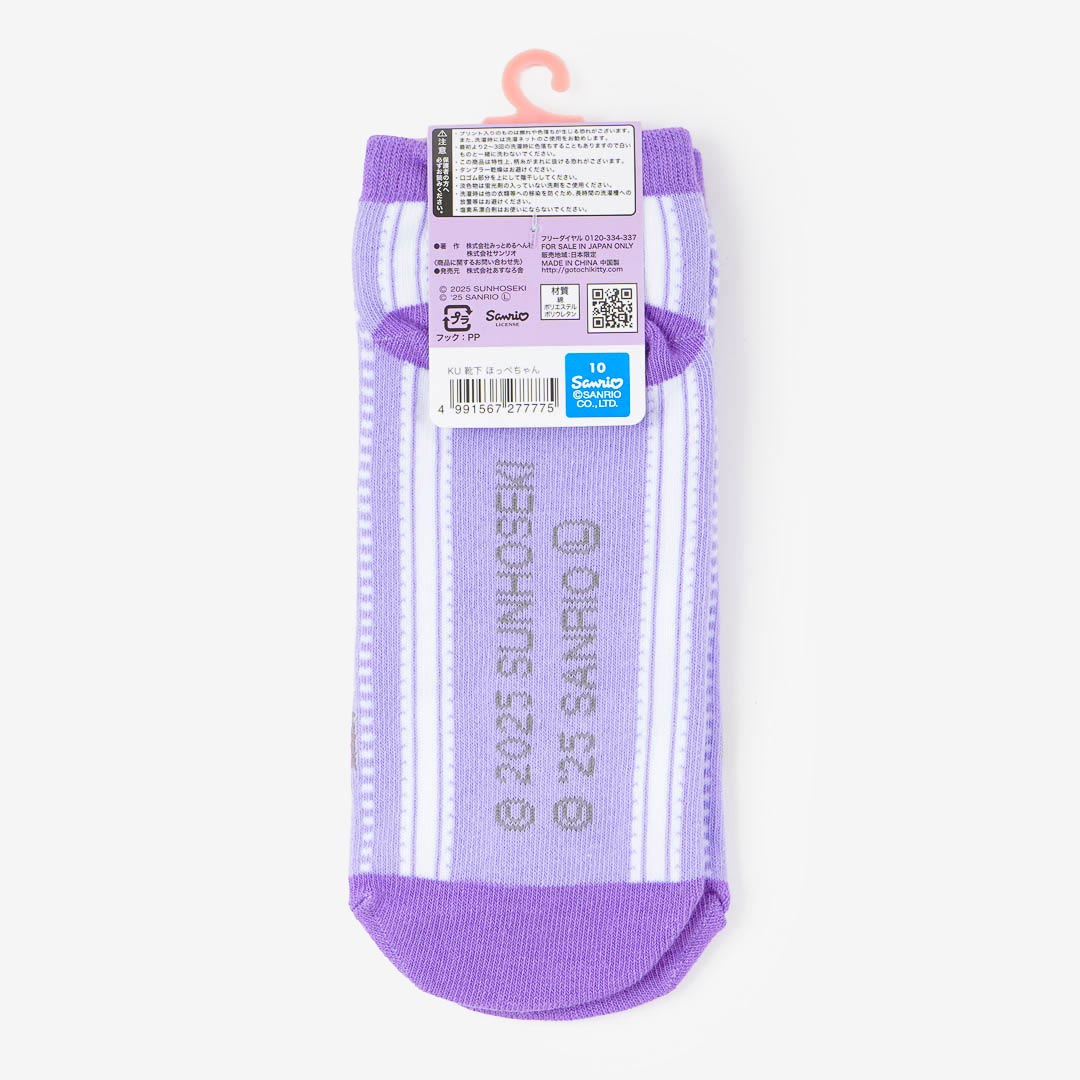 Complete your kawaii look with this pair of ankle socks! It features Kuromi looking like the blob Hoppe-chan. These socks are made of soft material that's comfy to wear!
