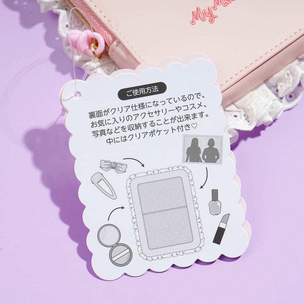 This super cute pouch resembles a baby cradle! It features a kawaii embroidery of My Melody looking like a baby. This pouch has a clear window so you can easily see what's inside. Use it to keep your earphones and lipsticks!