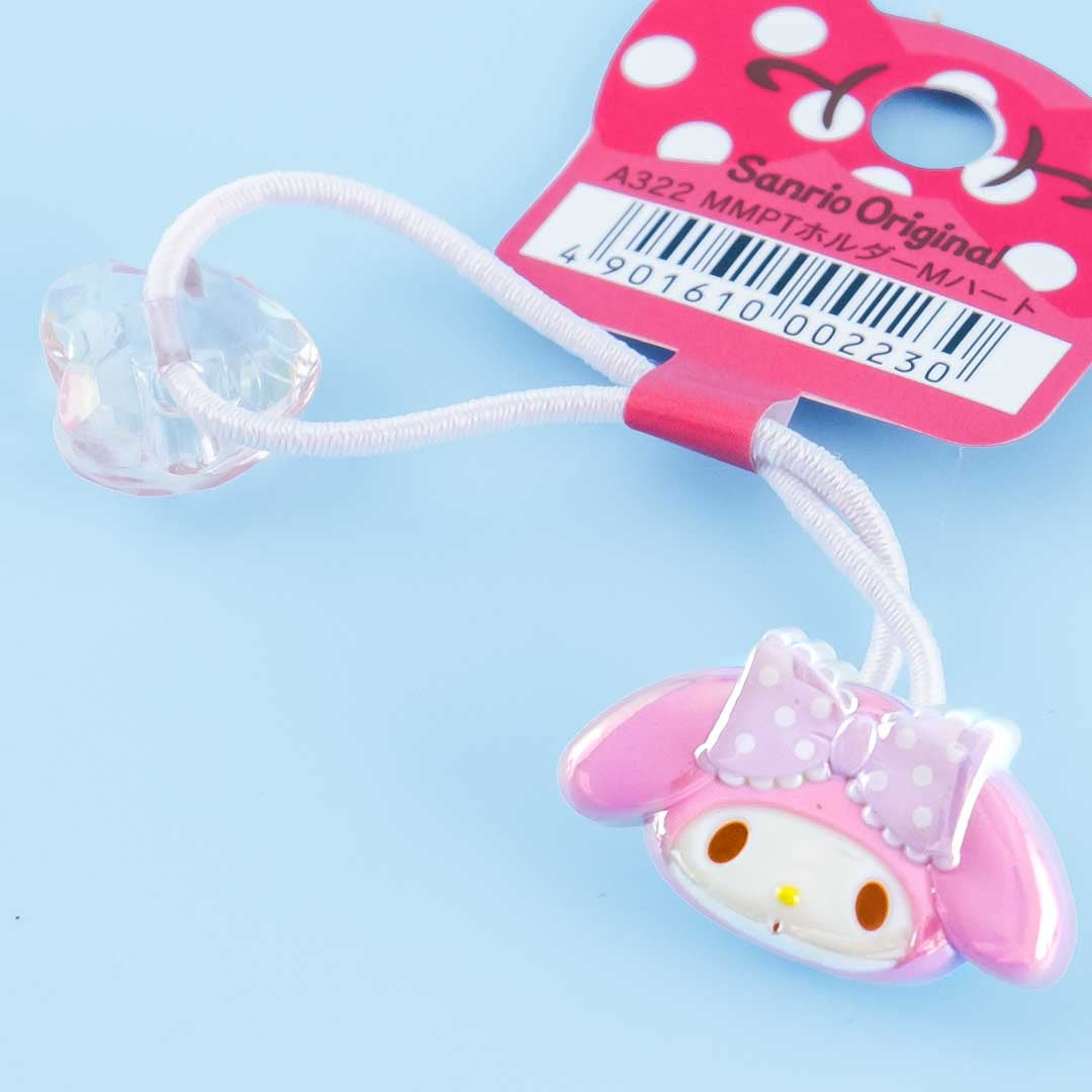 • A shiny hair tie featuring My Melody and jewel heart charms