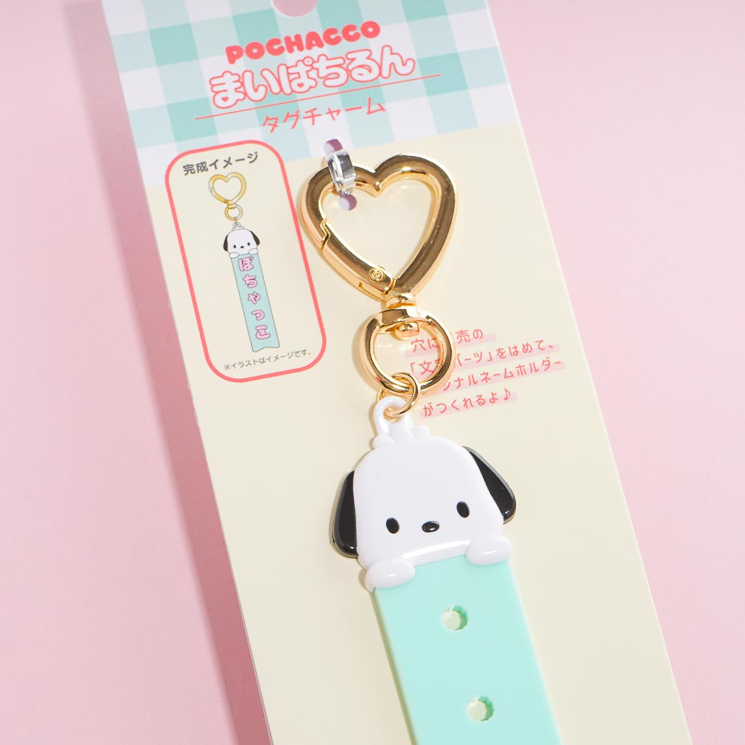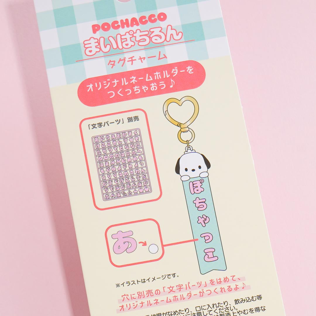 Use this super cute tag charm to kawaii-fy your favorite bag or pouch. It showcases a peeking Pochacco! You can customize this tag charm with the help of hiragana decors which you can use to create fun Japanese phrases.
