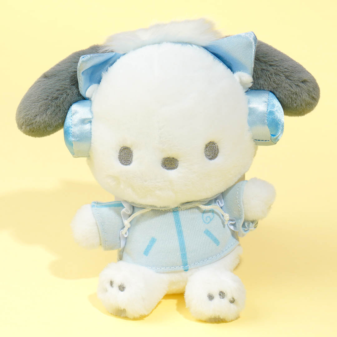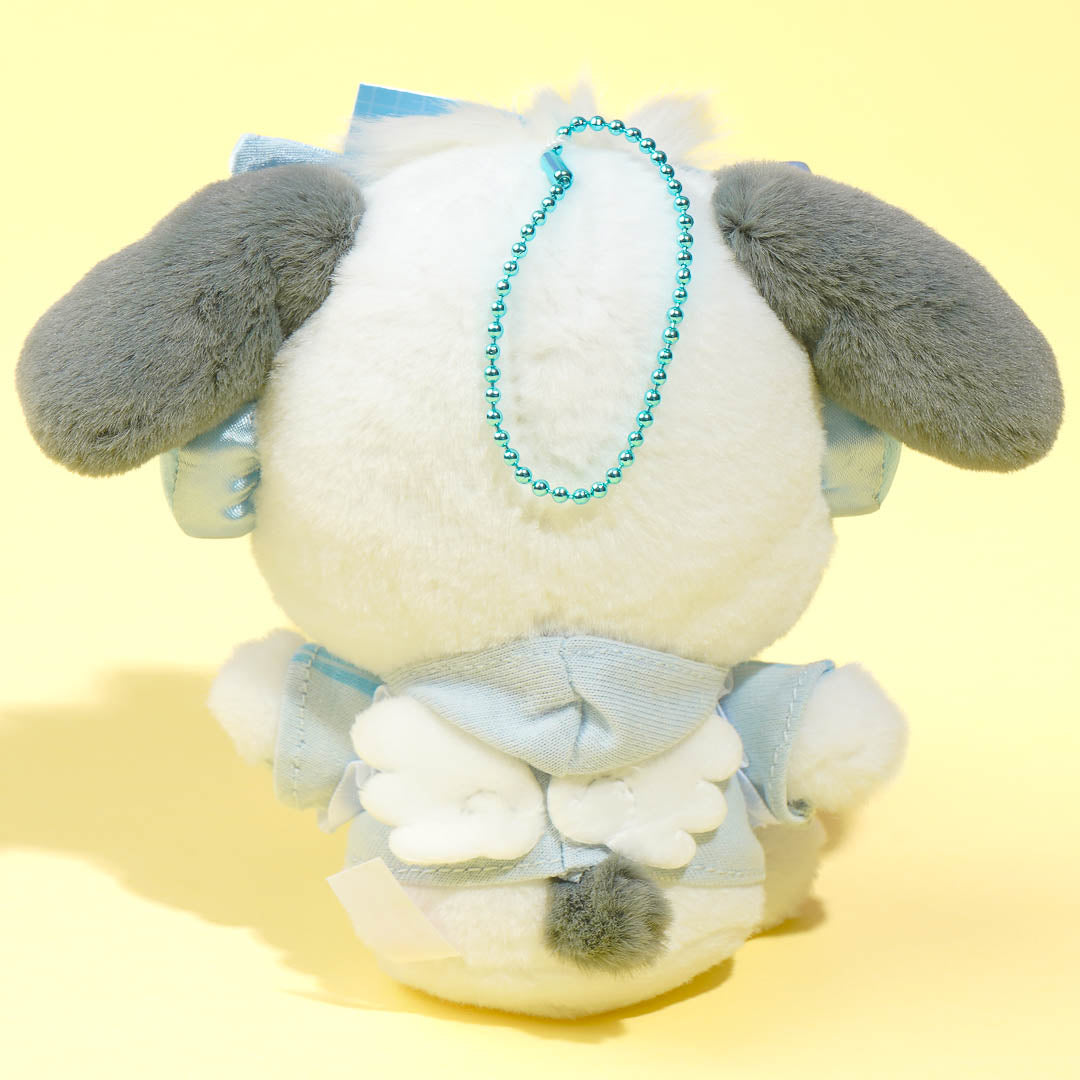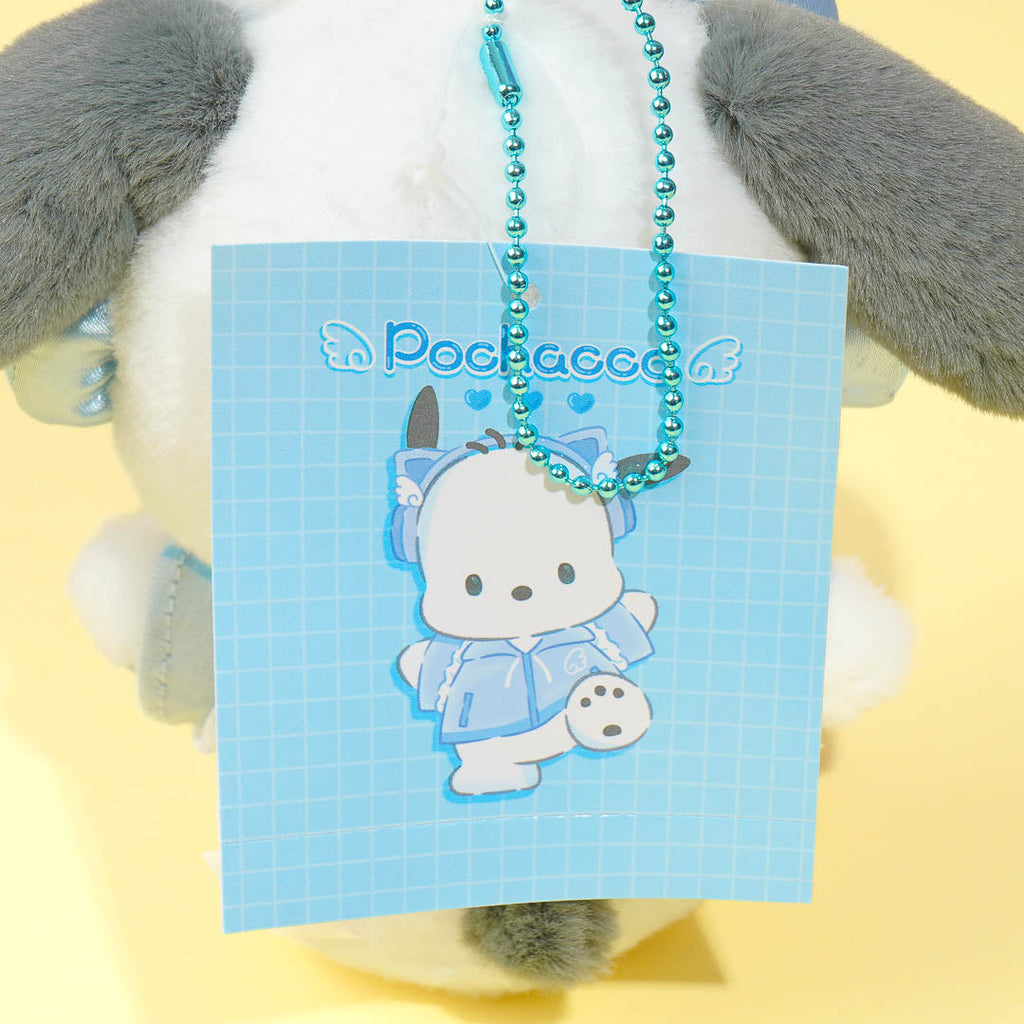 Head to the park with this kawaii Pochacco plushie charm from Sanrio's Light Blue Days series. This medium-sized cutie is wearing a sky-blue outfit! You can attach it to your favorite bag with its removable ball chain.