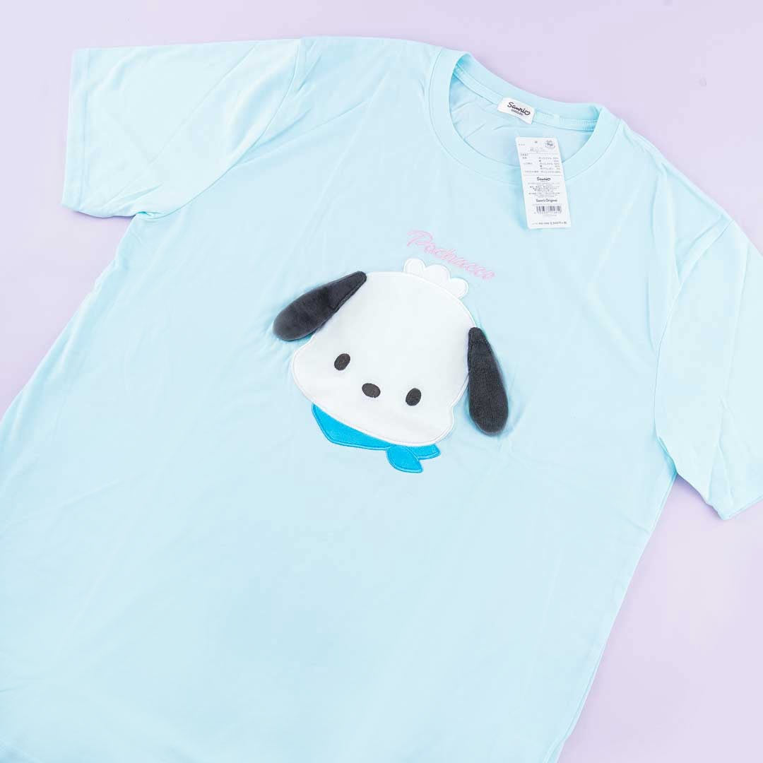 • A super cute shirt featuring a print of Pochacco wearing a scarf