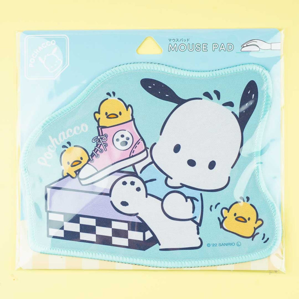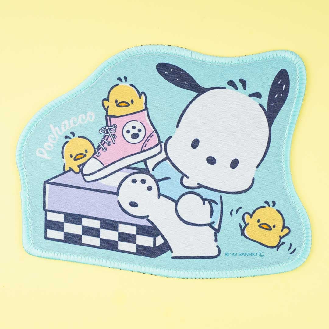 A super cute die-cut mouse pad decorated with a print of Pochacco and The Pi-chans