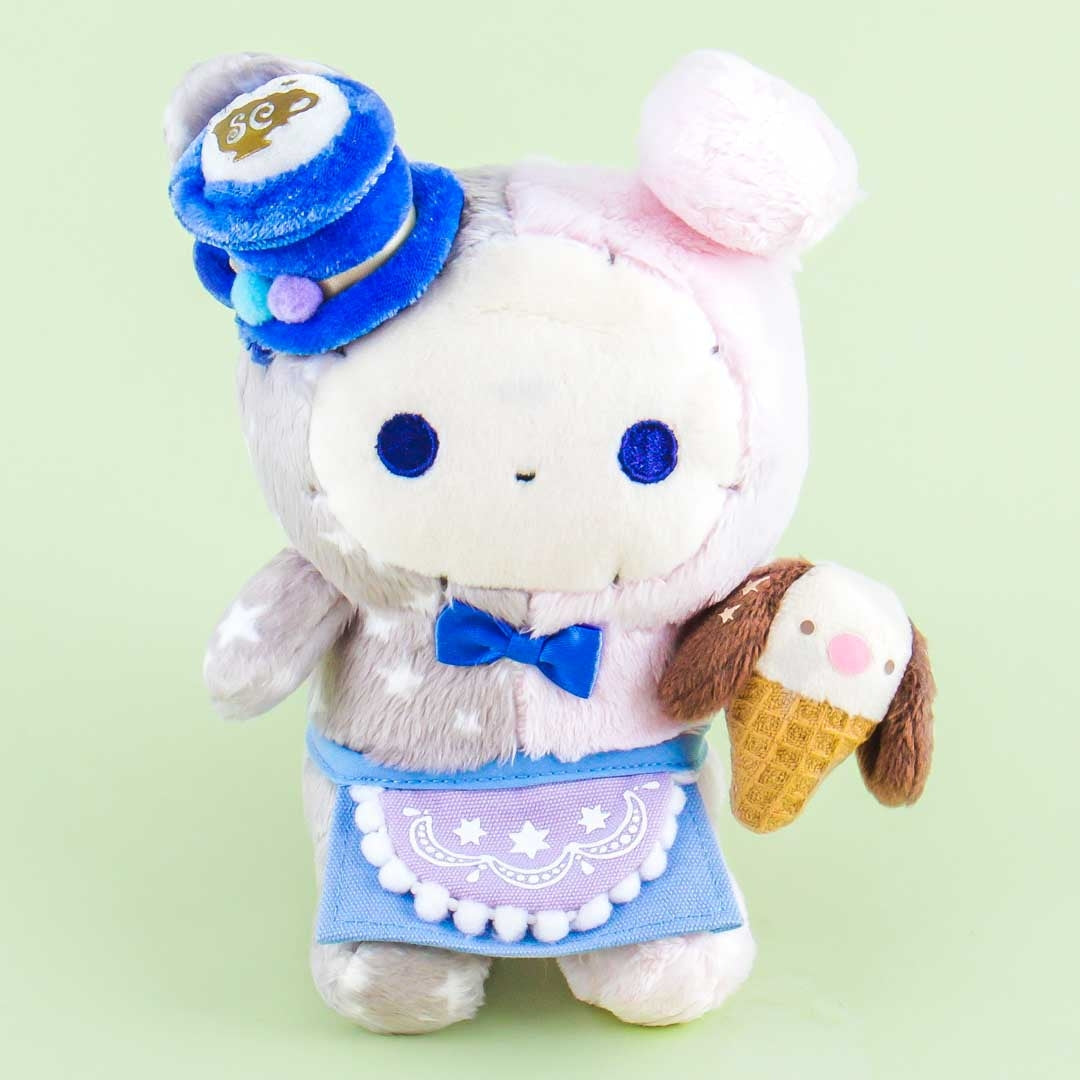 Visit Spica the circus rabbit in Café Futagoboshi! This super cute plushie wears a teacup hat, a café apron, and is holding an ice cream cone that looks like Toto the dog.