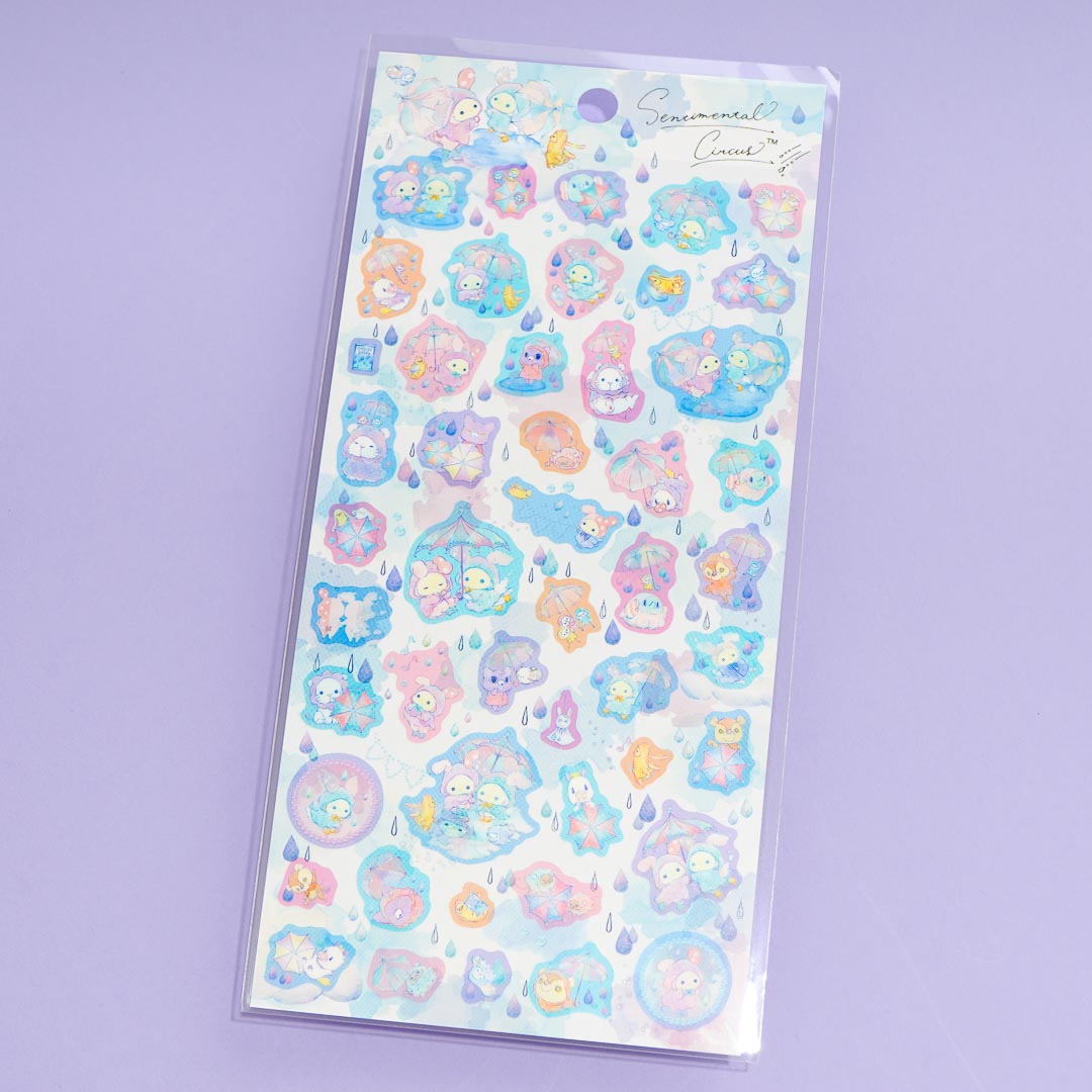 Have a blast decorating your planner using these super cute clear seals! This sheet has die-cut stickers with prints of the ringmaster bunny twins Shappo and Spica and their carnival crewmates — all surrounded by tear-shaped raindrops.