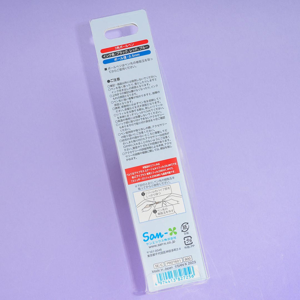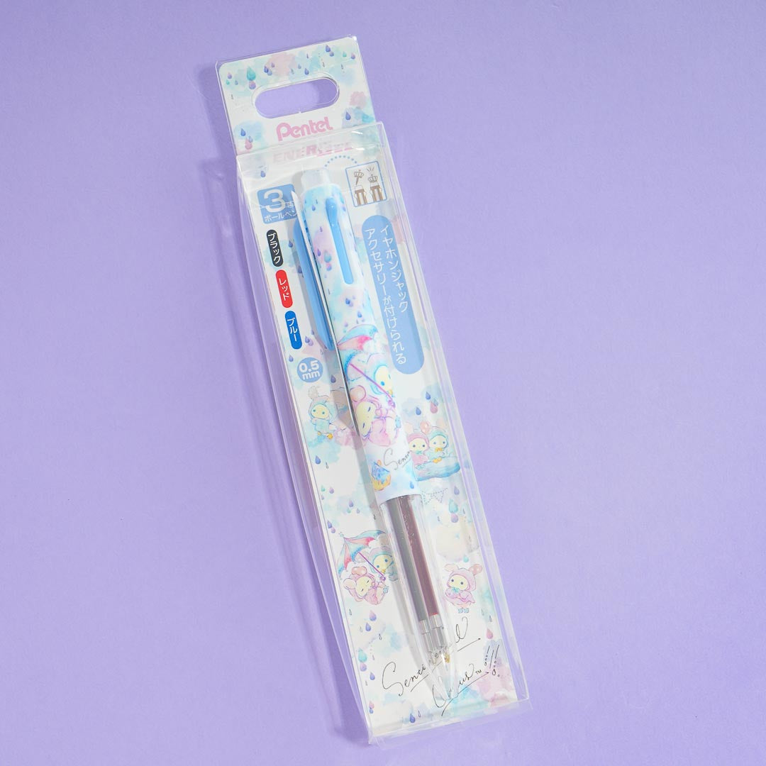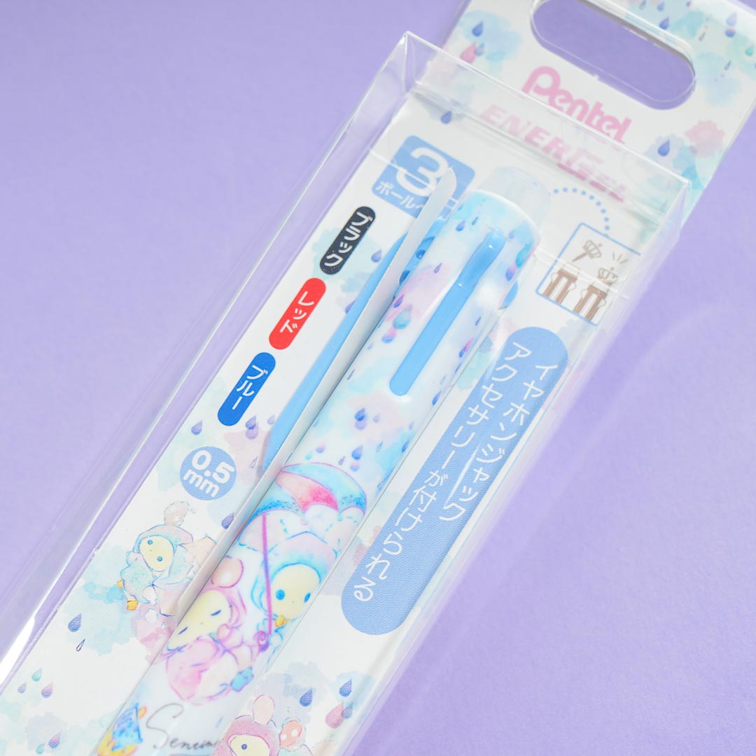 Have fun writing poems with this kawaiii ballpen illustrated with Sentimental Circus characters huddling underneath an umbrella. It comes from the "Sentimental Circus Rainbow Over the Sky of Tears" series! It has three different colors for you to use - black, red, and blue.