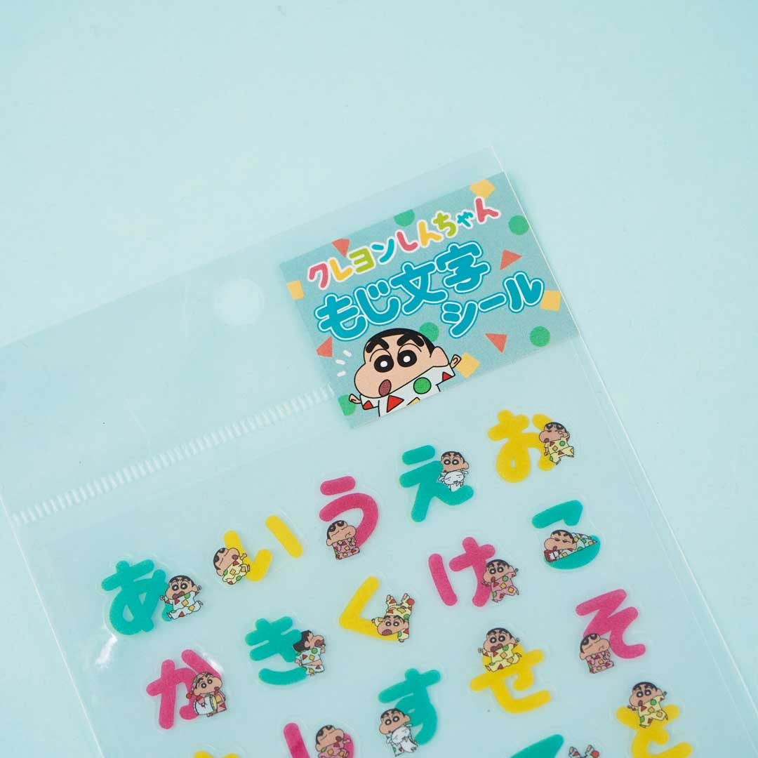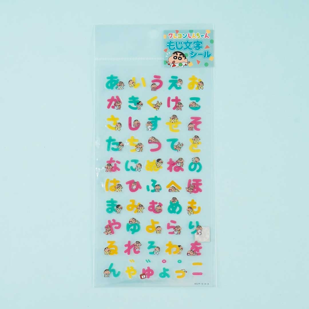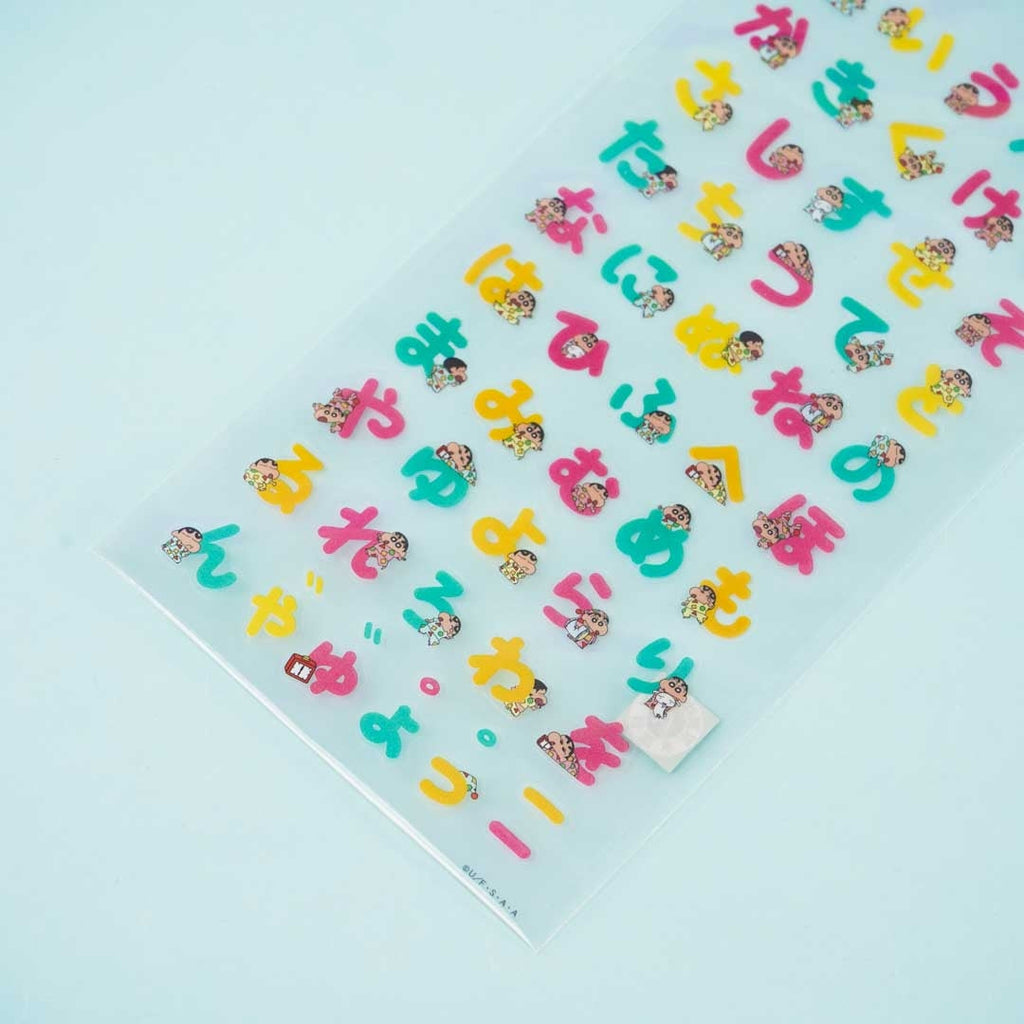 • A super cute sheet of stickers featuring prints of Crayon Shin-chan and Japanese hiragana characters