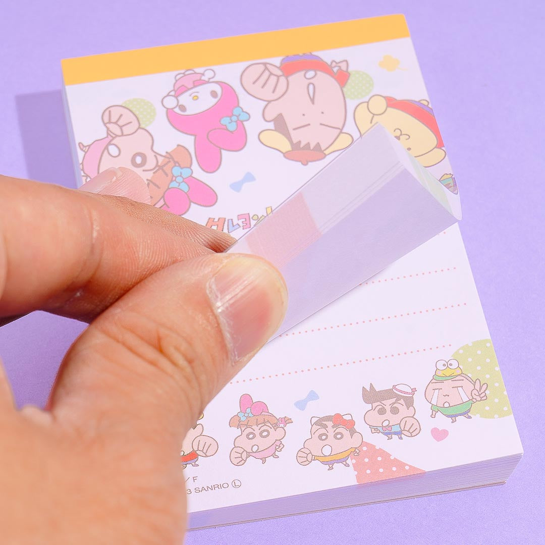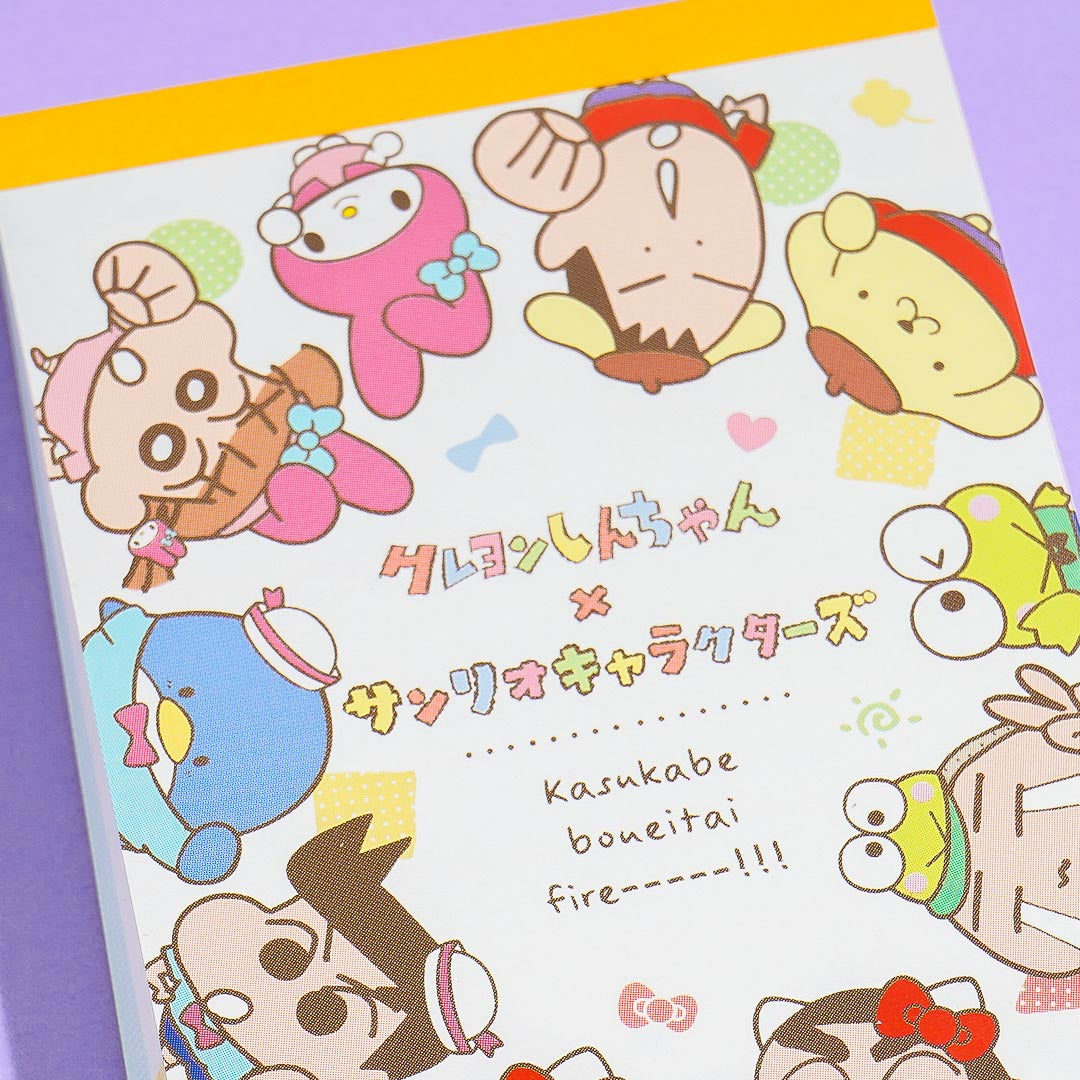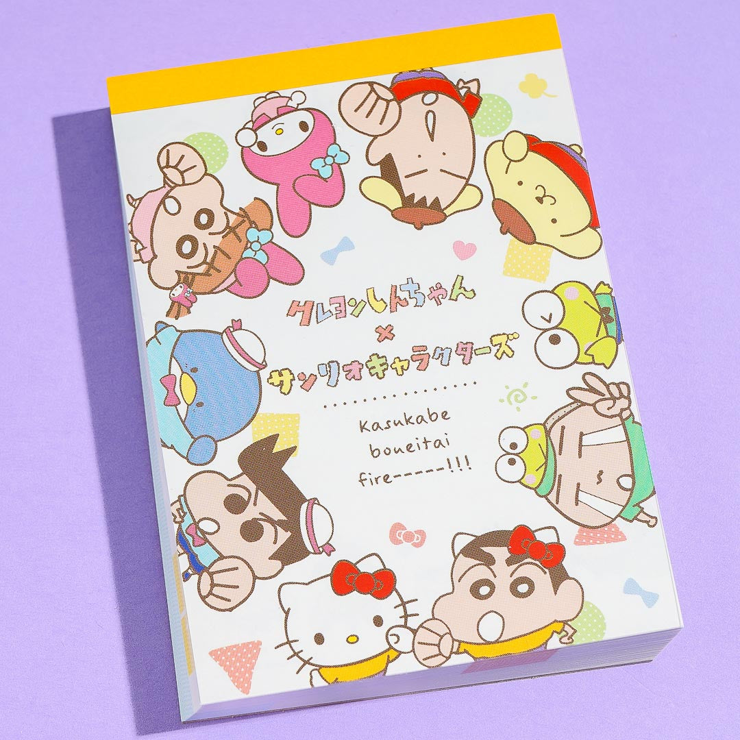 Write important notes and reminders on this kawaii memo pad. It's illustrated with prints of Sanrio cuties and Crayon Shin-Chan characters punching the air. This memo pad is a great addition to your stationery collection