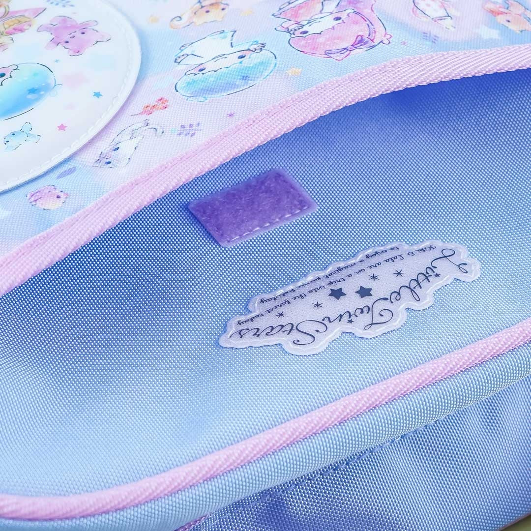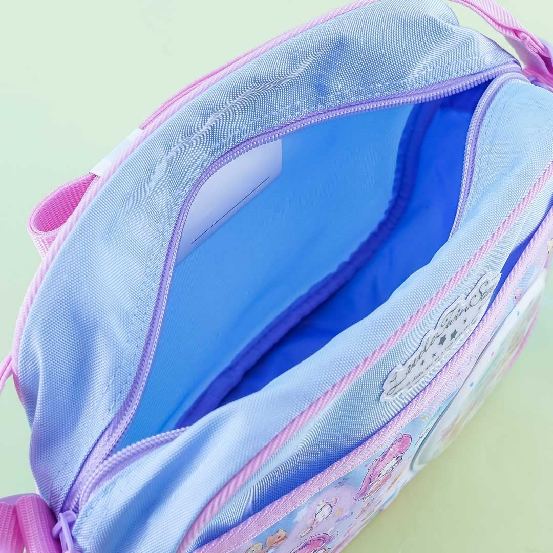 Take this kawaii sling bag with adjustable straps to your daily commute! It has cute illustrations of the Little Twin Stars dreaming about a lovely picnic with their animal friends! This roomy bag made of soft polyester has a reflective nameplate, a front pocket with a velcro lock, and a zipper closure.