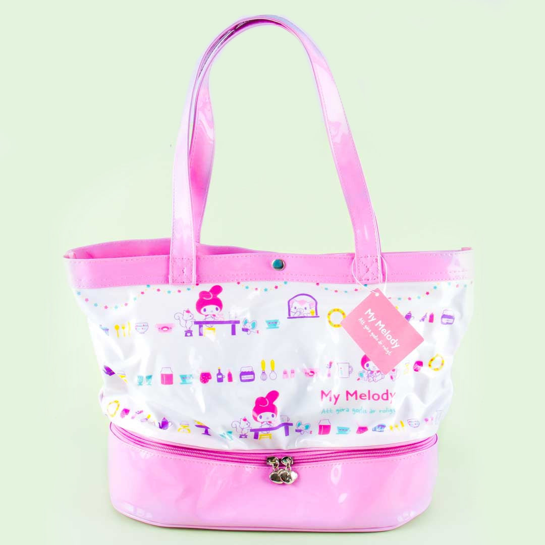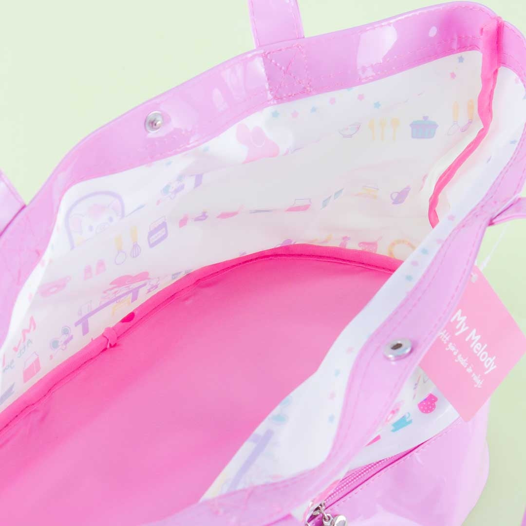 A kawaii shoulder bag featuring My Melody and various kitchenware