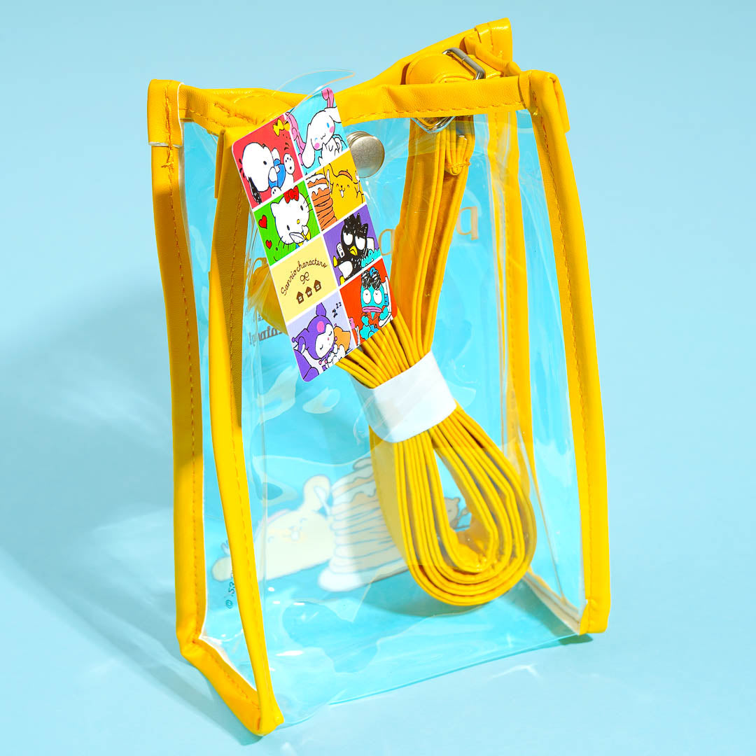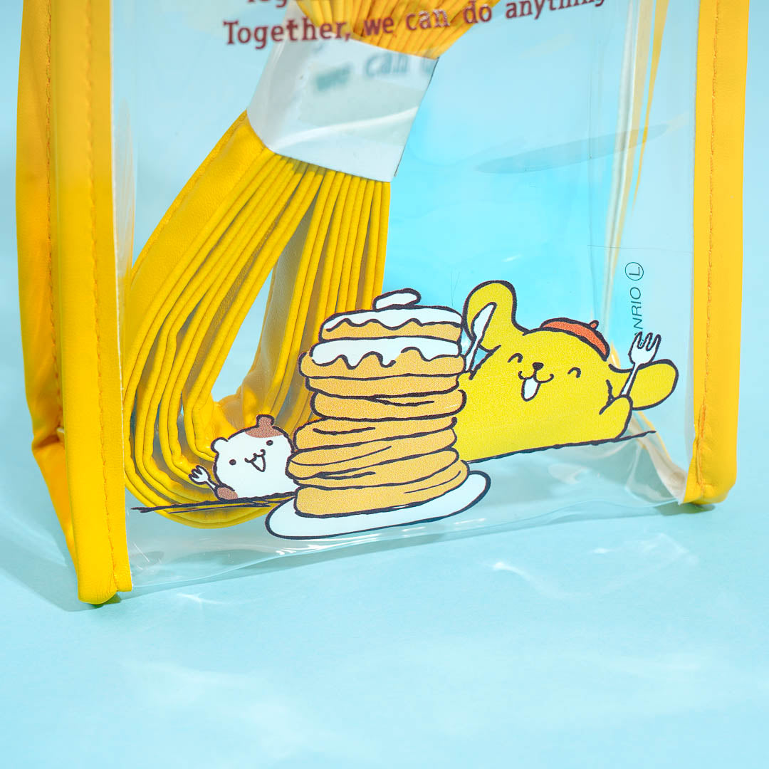 Bring along this cute transparent shoulder pouch while you go cafe-hopping with your buddies. It showcases a print of Pompompurin getting ready to eat a big stack of pancakes for breakfast! This clear pouch has an adjustable shoulder strap and a button closure.
