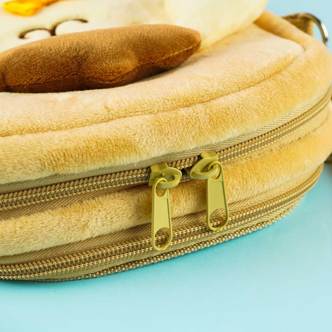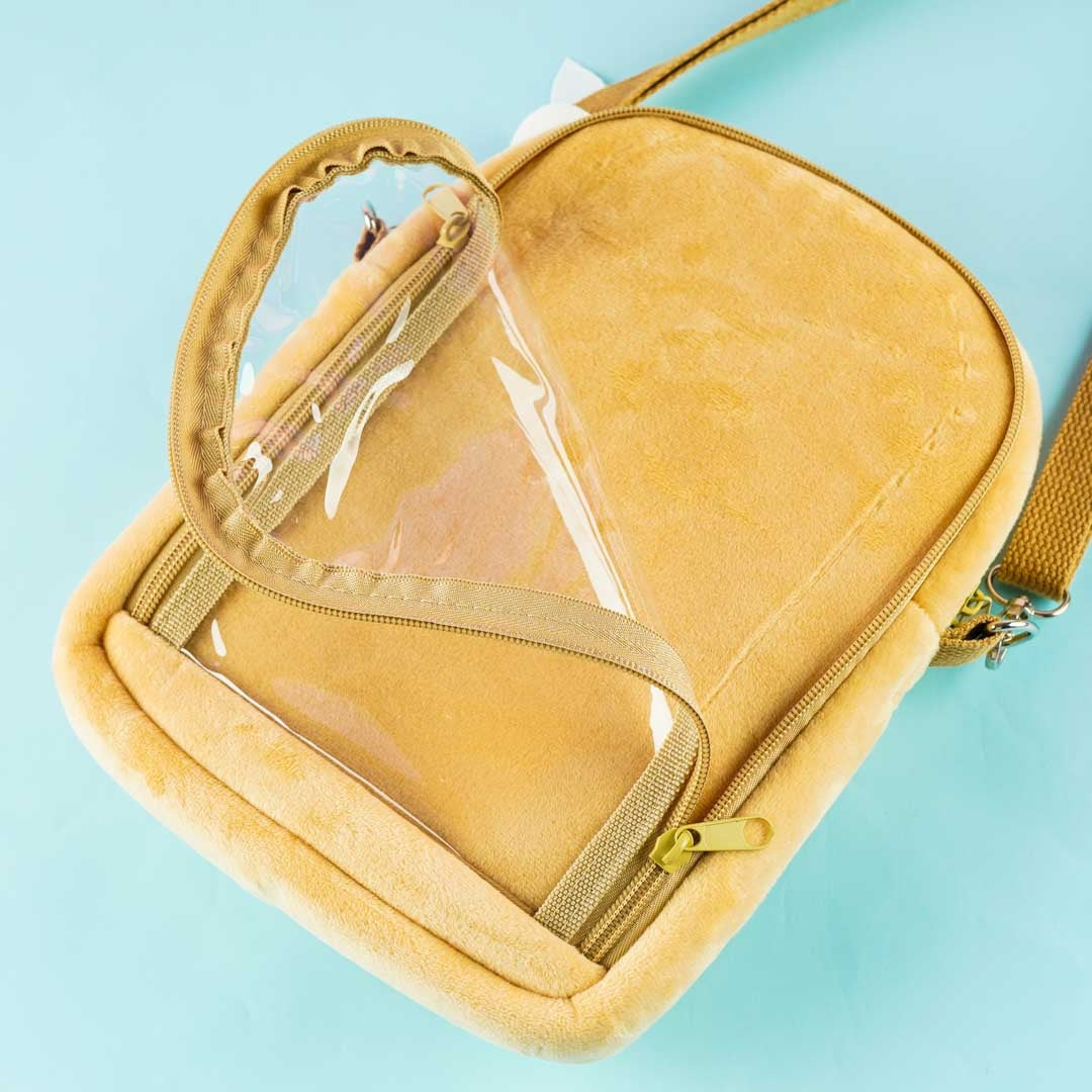 Use this super kawaii plushie shoulder bag to carry around your essentials like your phone and wallet. It has a super cute print of Pompompurin with pop-up ears and feet! This bag also has a zipper closure, a removable strap, and a zippered pocket at the back.