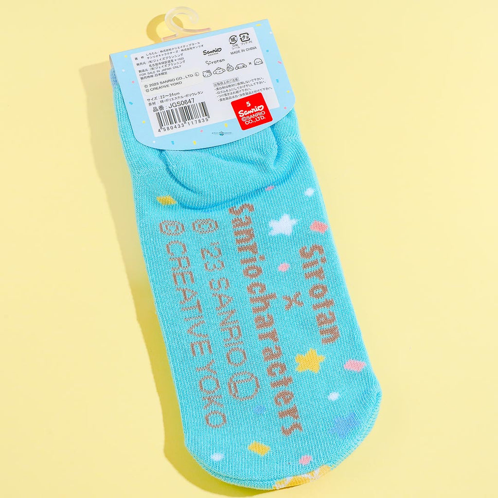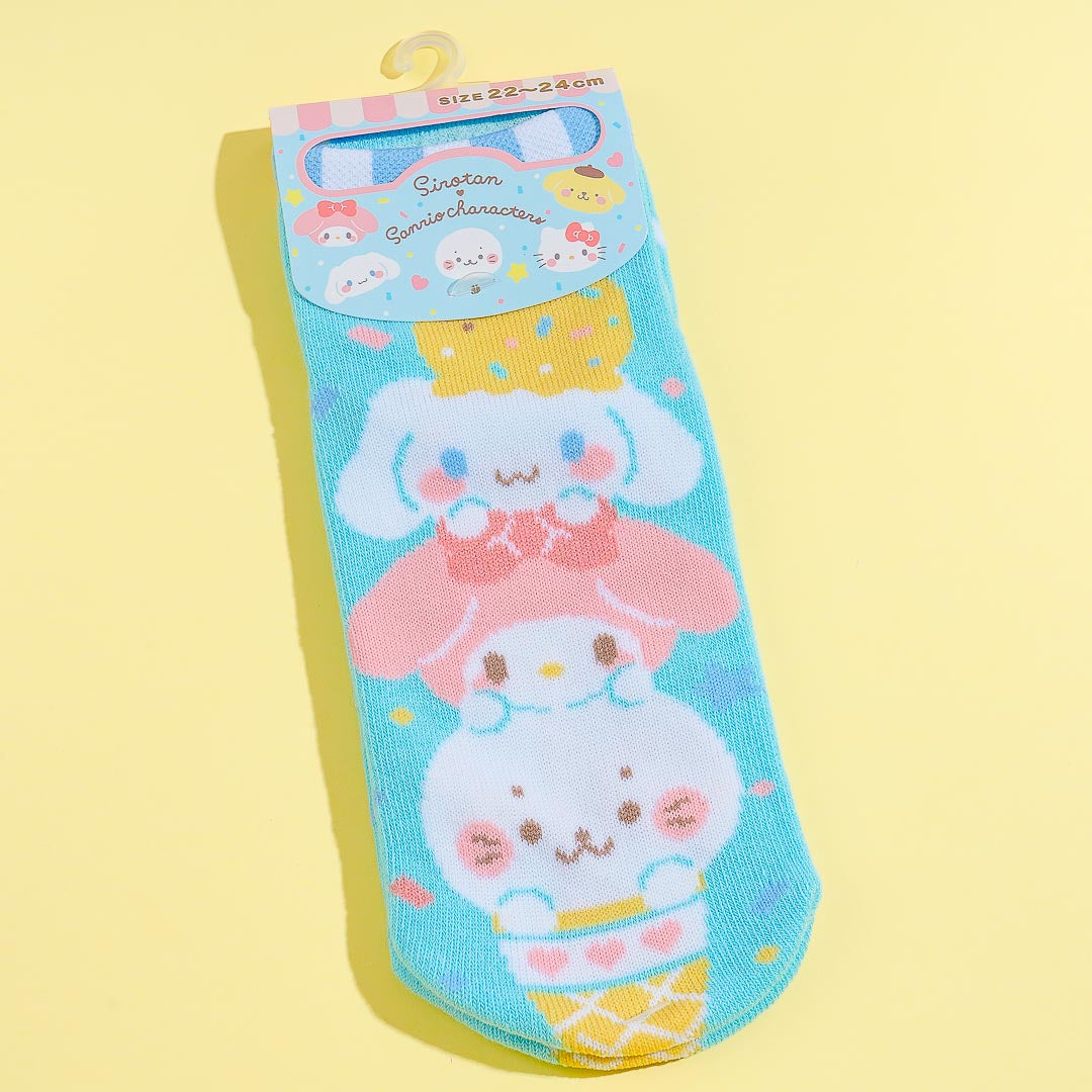 Head to the anime convention wearing this super cute pair of socks. It showcases a print of Sirotan the seal stacked up with Sanrio cuties inside an ice cream cone! These socks go perfectly with your kawaii outfit of the day.