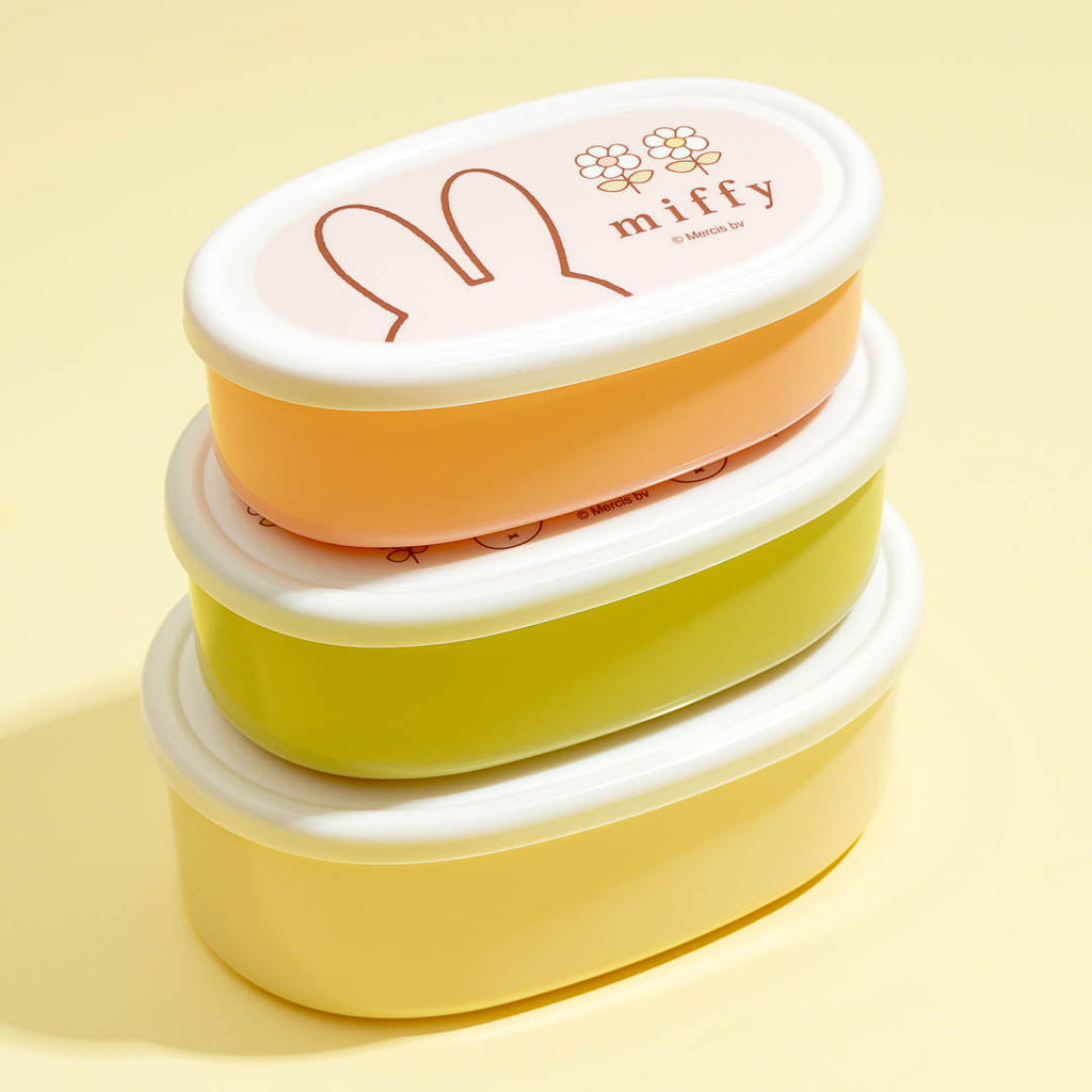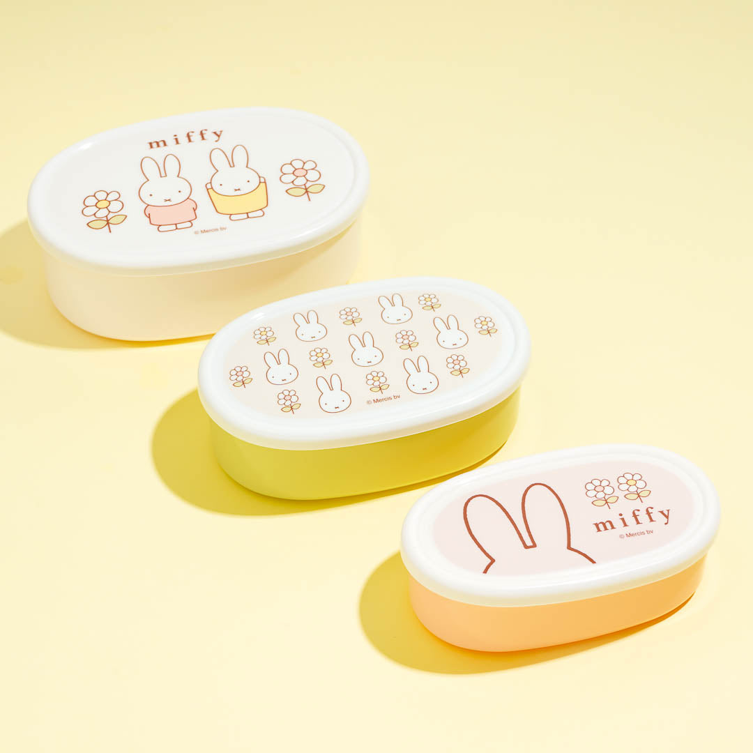 Pack lunch with the help of this cute bento box set decorated with prints of Miffy characters and flowers! These bento boxes can be nestled inside each other making them easy to keep. Remember to remove the lid before heating these lunch boxes in the microwave.